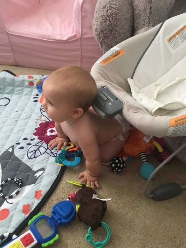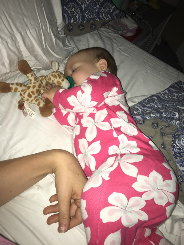 Please don’t be fooled. This is her “I don’t want to eat or play or sleep or be held or be sat down” face. And once you look at her she pulls a fast one on you.