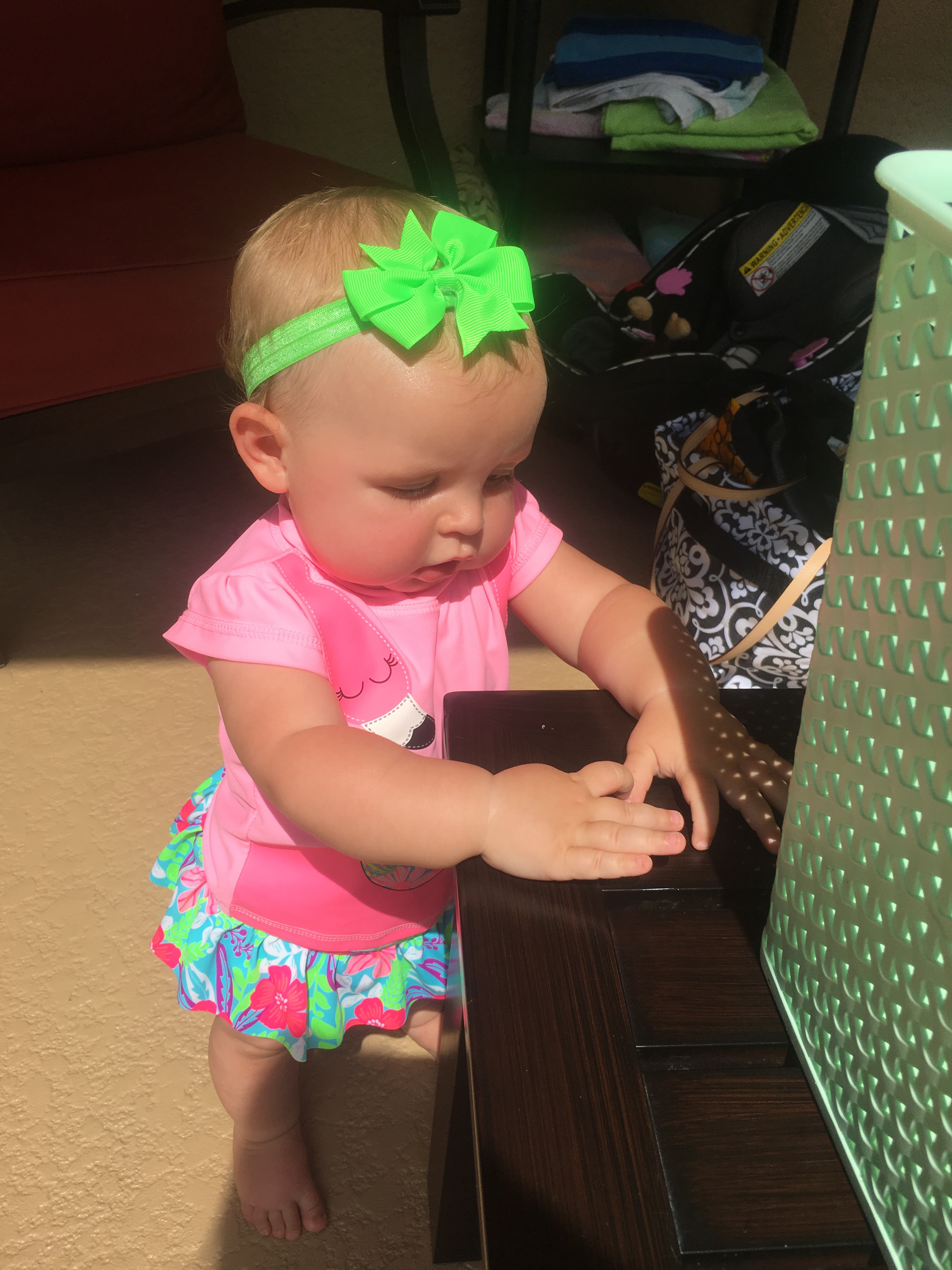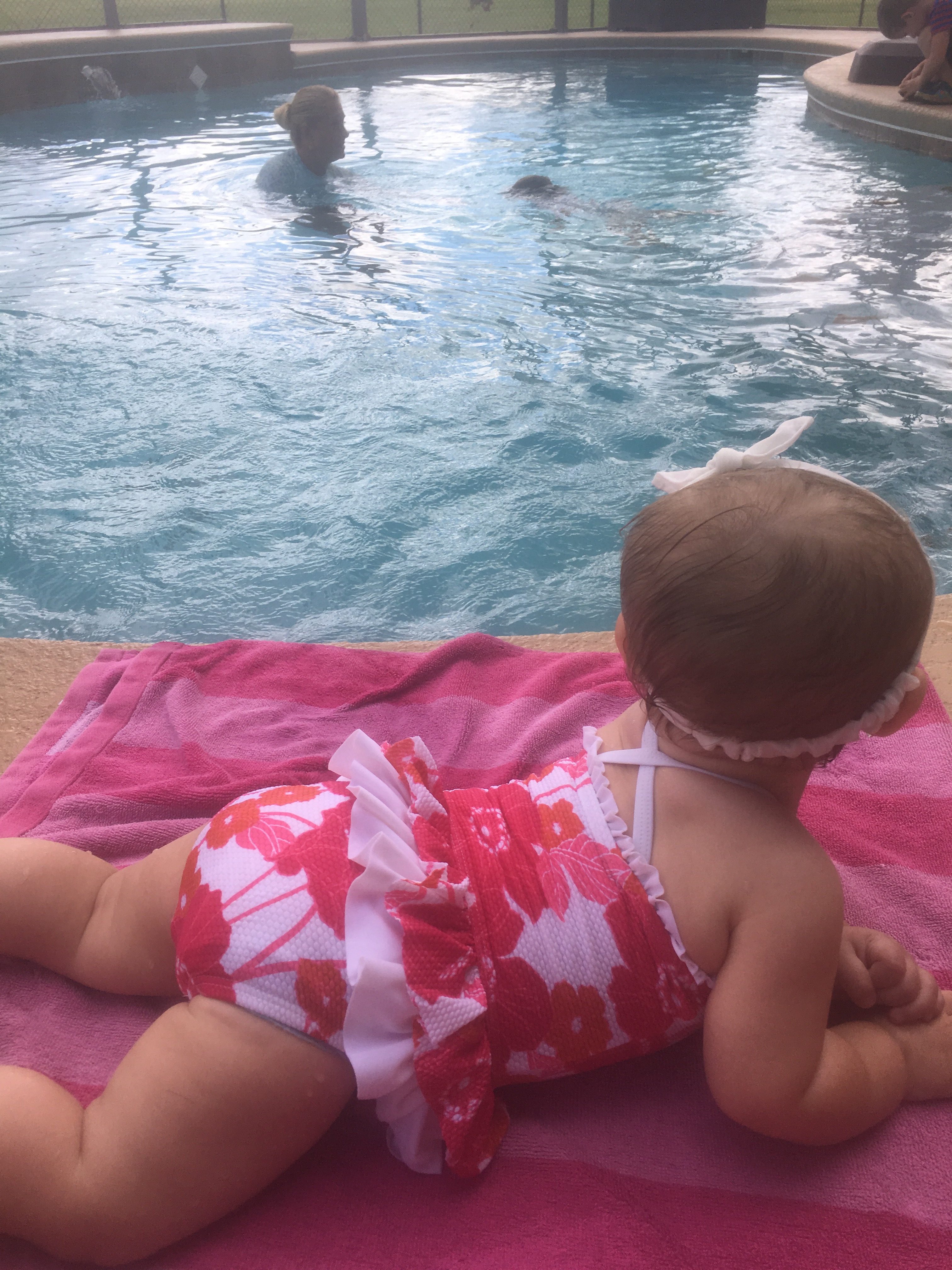 Of course I have no intention of Kensie ever having to use these skills, but if we could predict accidents, they wouldn’t happen. We have a pool about 6 feet from our back door. We go to pool parties, friends have pools, my parents live on a retention pond, we boat. We live in Florida. The girl needs to know how to float and breathe!