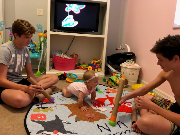 We had to do a lot of distracting today so that KB would take a chill pill. It started with a morning family walk, but it didn’t last long since it felt like it was about 300 degrees out today!