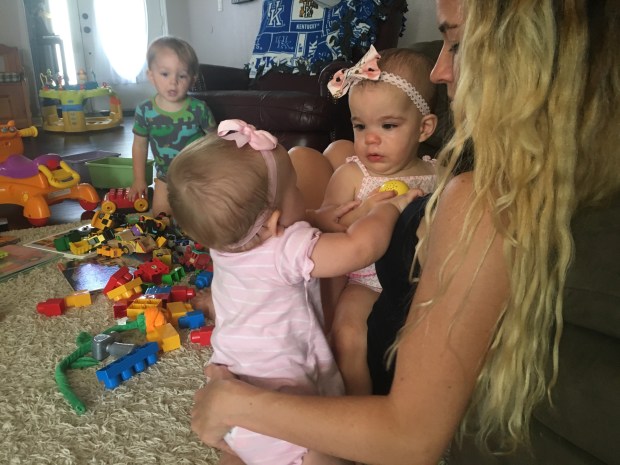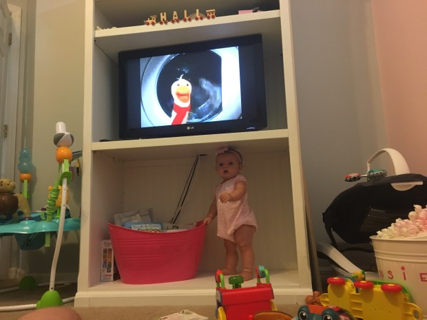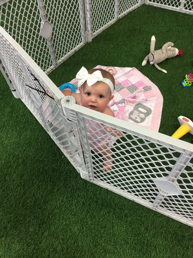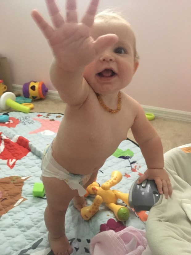 Kens was also on a standing mission this weekend. Any time she had the opportunity, she’d pull herself up and stand. After a while she’d get frustrated because she couldn’t figure out how to move from that position. I’m so not ready for KB to walk!