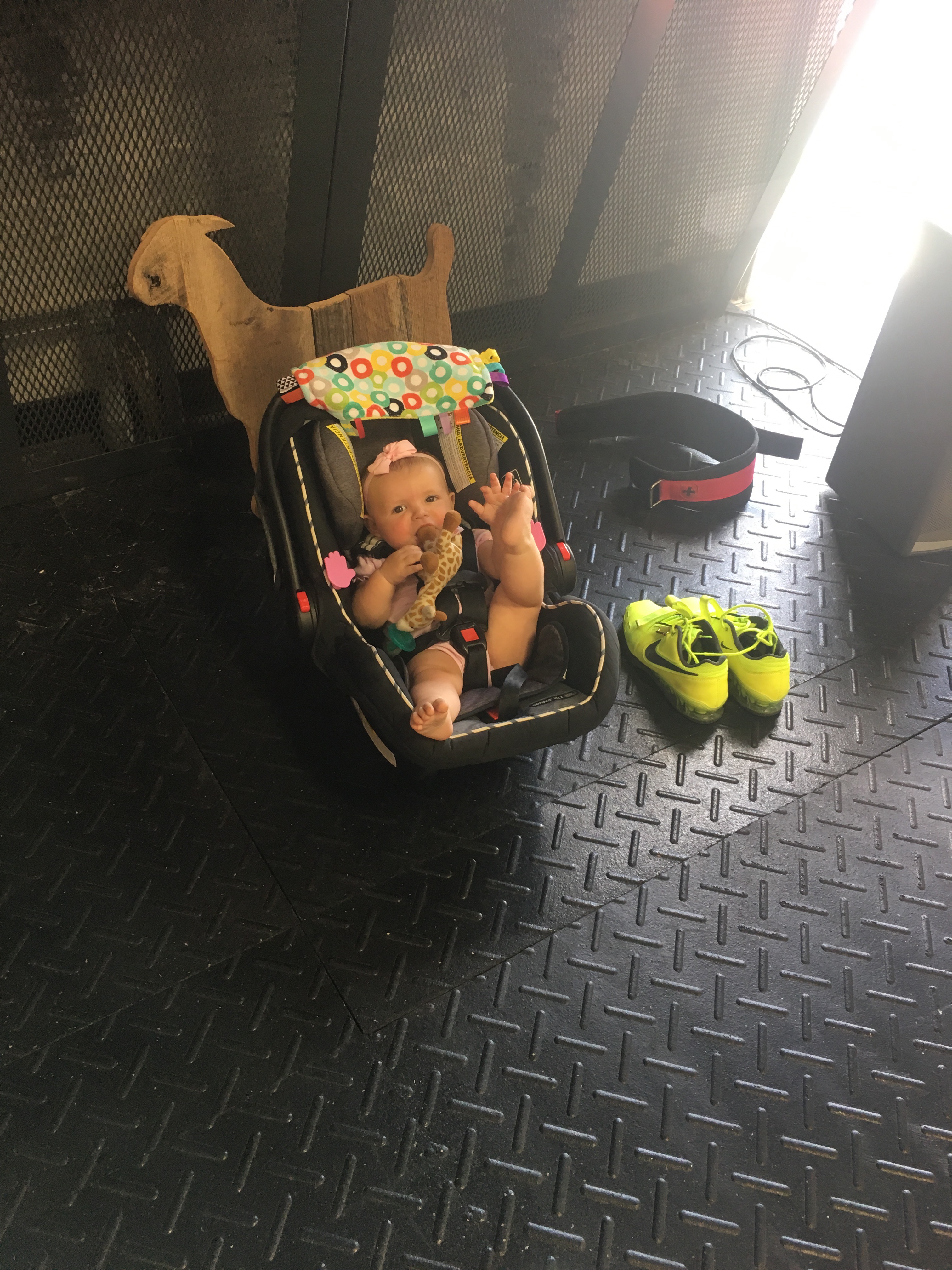 This weekend we had a great day and a not so great day. Saturday K slept in a little (thank you Lord) and was full of smiles all day long. We went to support some of our athletes out at a competition and other than really wanting to crawl on the gym floor, Kens loved it! I was waiting for her breakdown from being tired and hungry, but it never came.