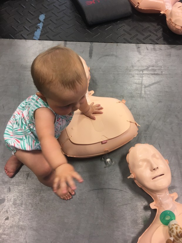 This afternoon we got CPR certified and KB had to come along. In her defense, she was very good for something that isn’t entertaining for her!