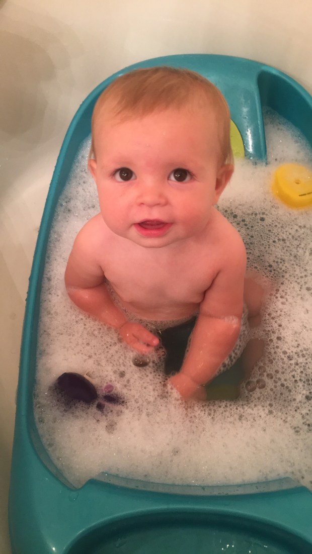 Tonight she got a special treat before bed! Her first bubble bath!! It was mainly because I was desperate to distract her, so thankfully it worked!