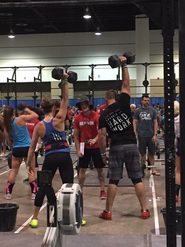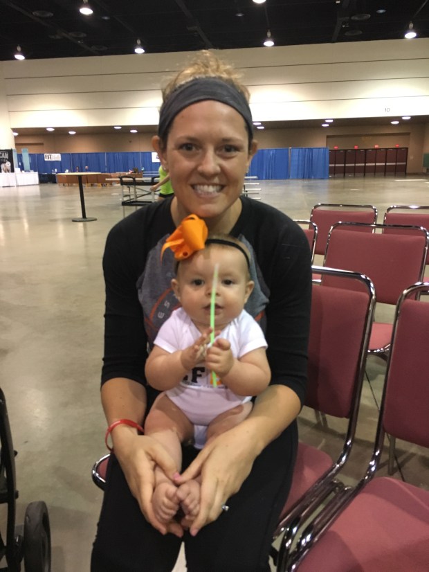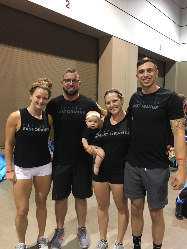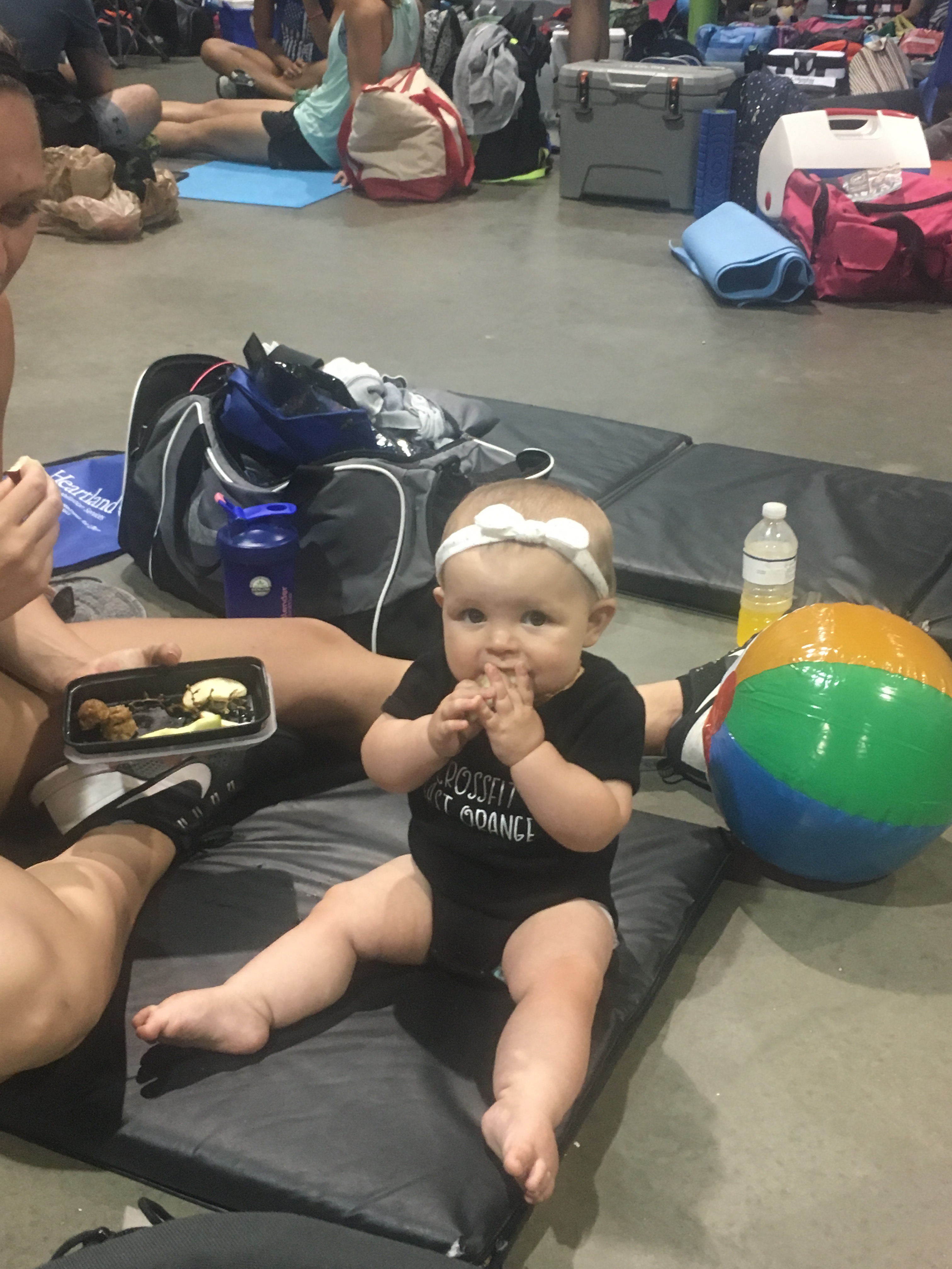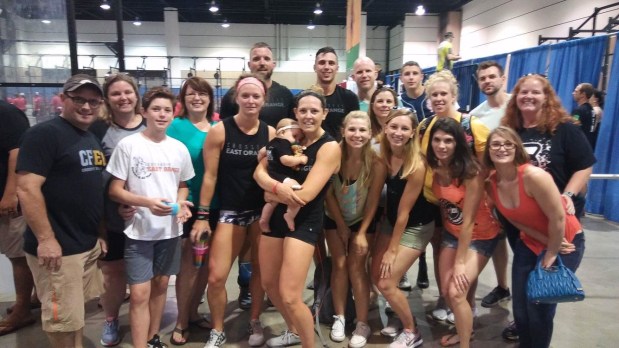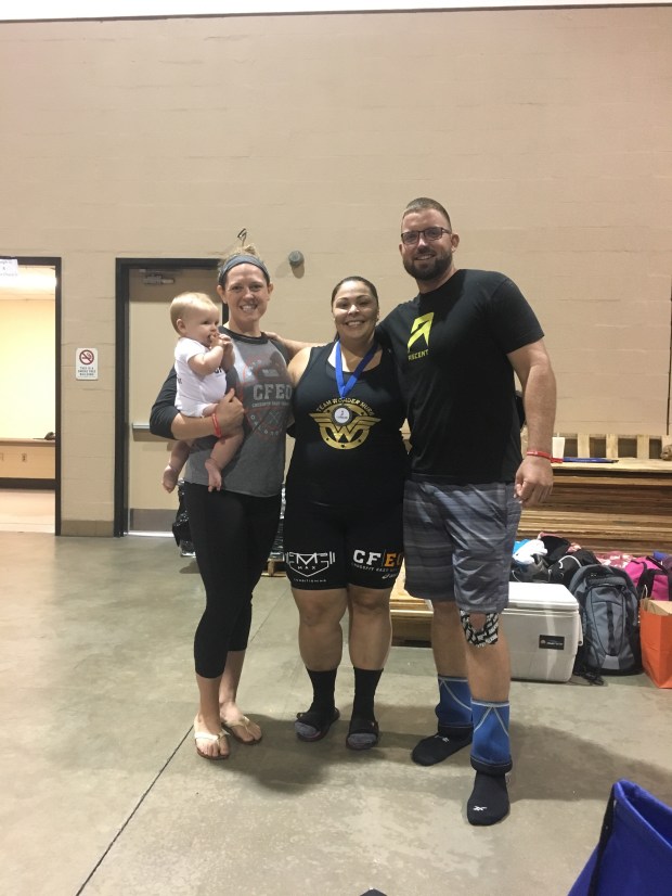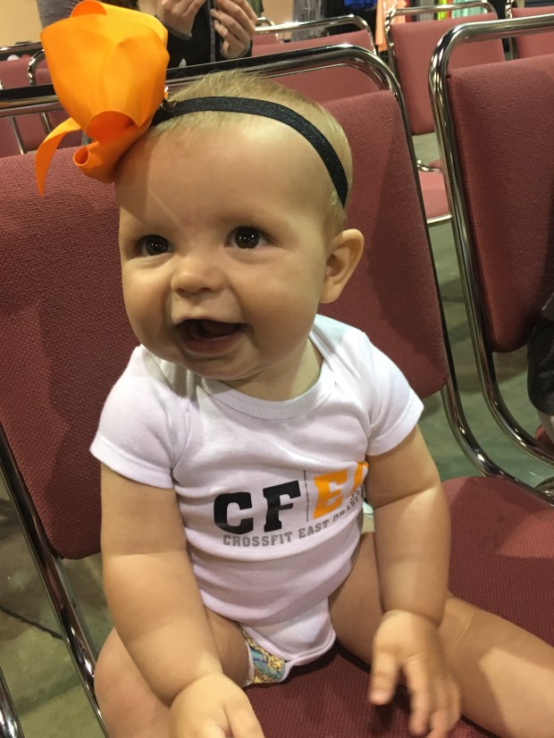 Having a baby to feed in between WODs was quite the experience. We were extremely thankful that Grandpa and Grandma came to cheer us on and help and watch K while we competed!