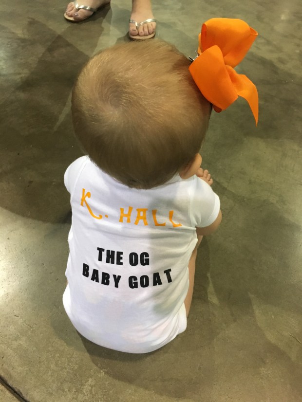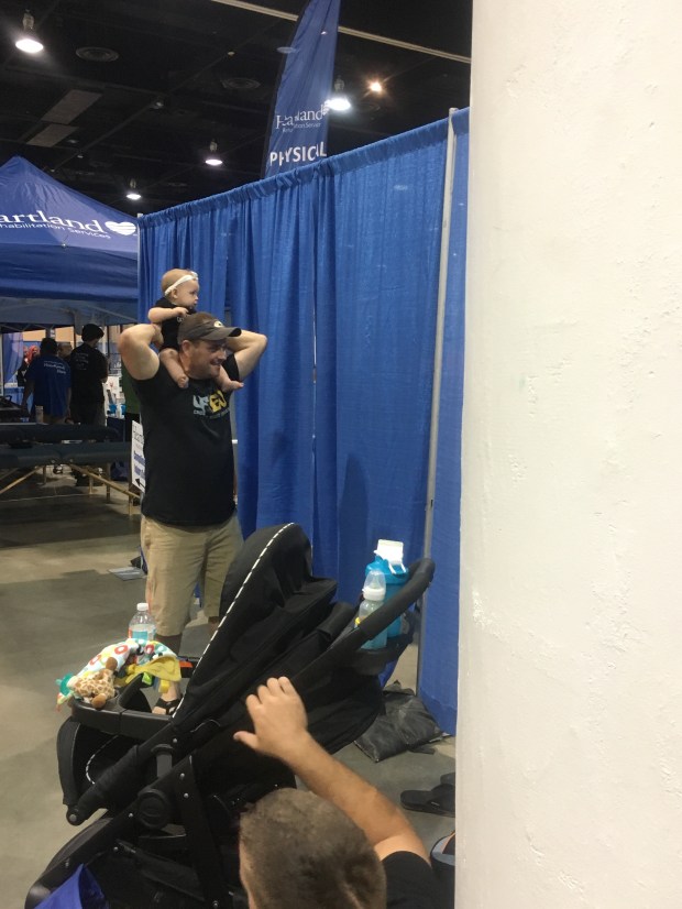 Some lady gave Kens a glow stick while we were waiting on the meet to start. I know it’s not safe blah blah blah…I let her play with it for a little bit then threw it away. So proud! And Kensie clapped after all her lifts!