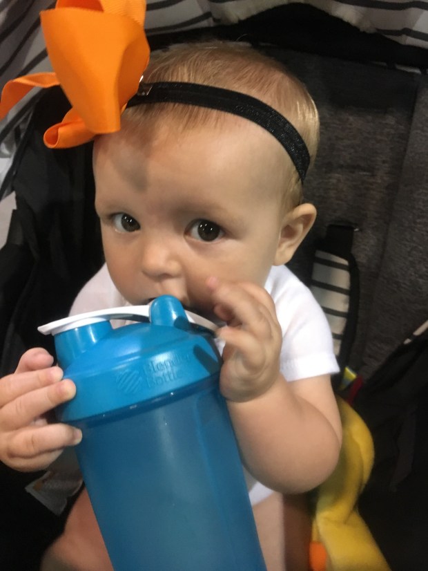 Fun fact: shaker bottles double as rattles In between workout snacks with mommy!