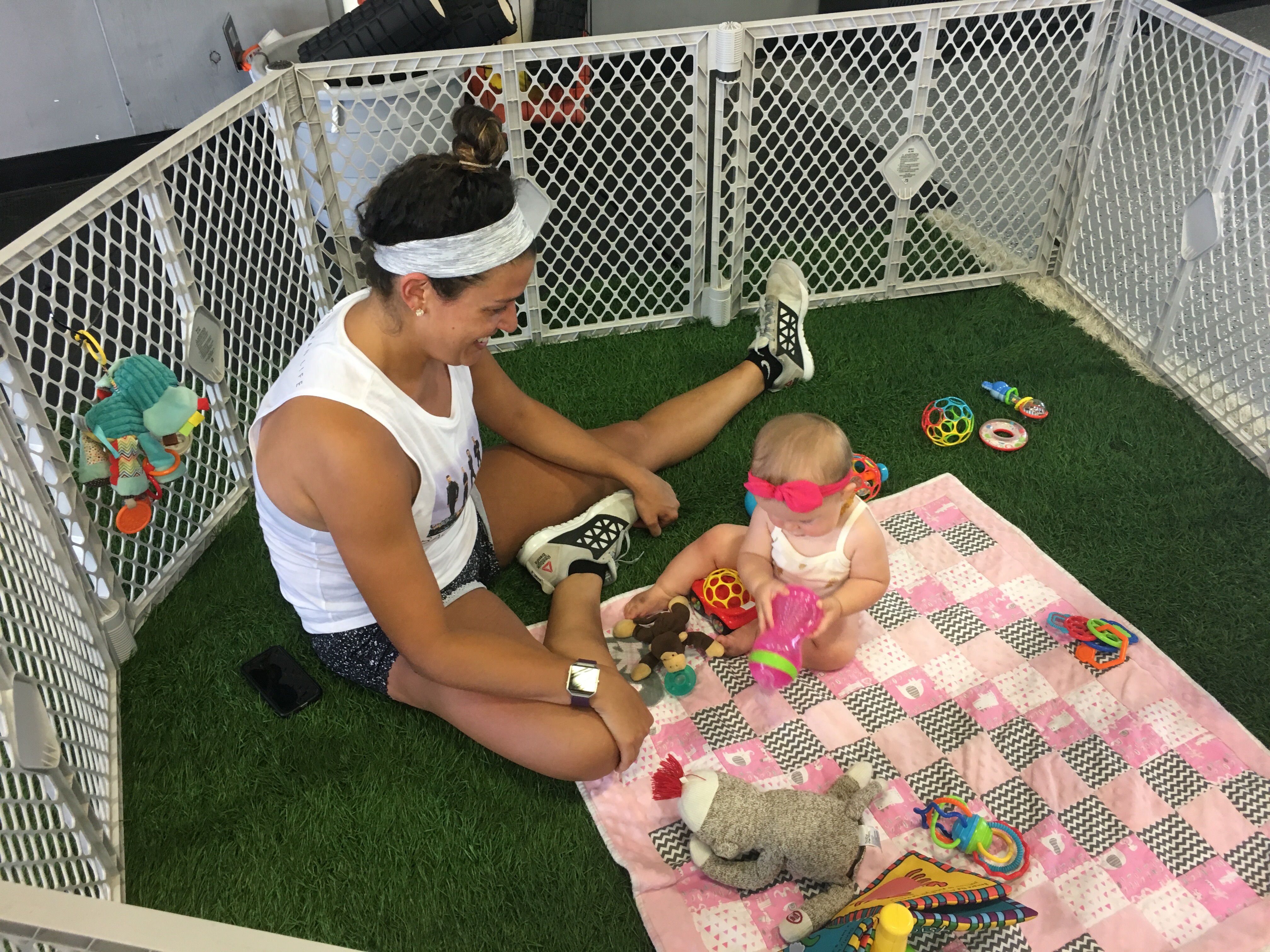 “Because Your Mommy Does CrossFit” πHappy Birthday, Aunt Shell!!!Now that we are back home and her schedule was normal, we gave the whole “cry it out” thing another shot tonight. K didn’t even make it to crying! She fussed some and was out in less than 10 minutes. Phew! She cried real tears last night and I couldn’t let her do it. I felt too bad from the long day she had so I picked her up and let her sleep with me instead. Oops. π€·πΌββοΈ