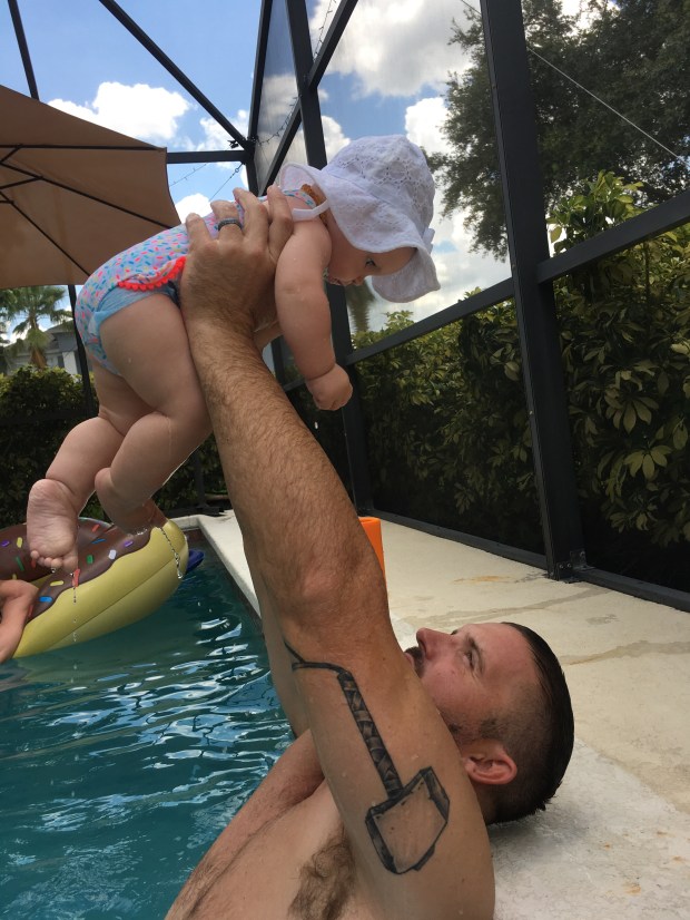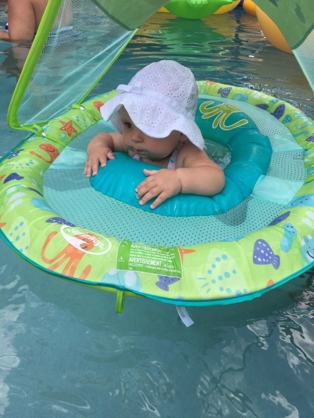 Safe to say Kensie had a blast with some of her favorite people! She is over her pool float (prefers to be held while she splashes) but Aunt Ashley got her to tolerate it for a few minutes.