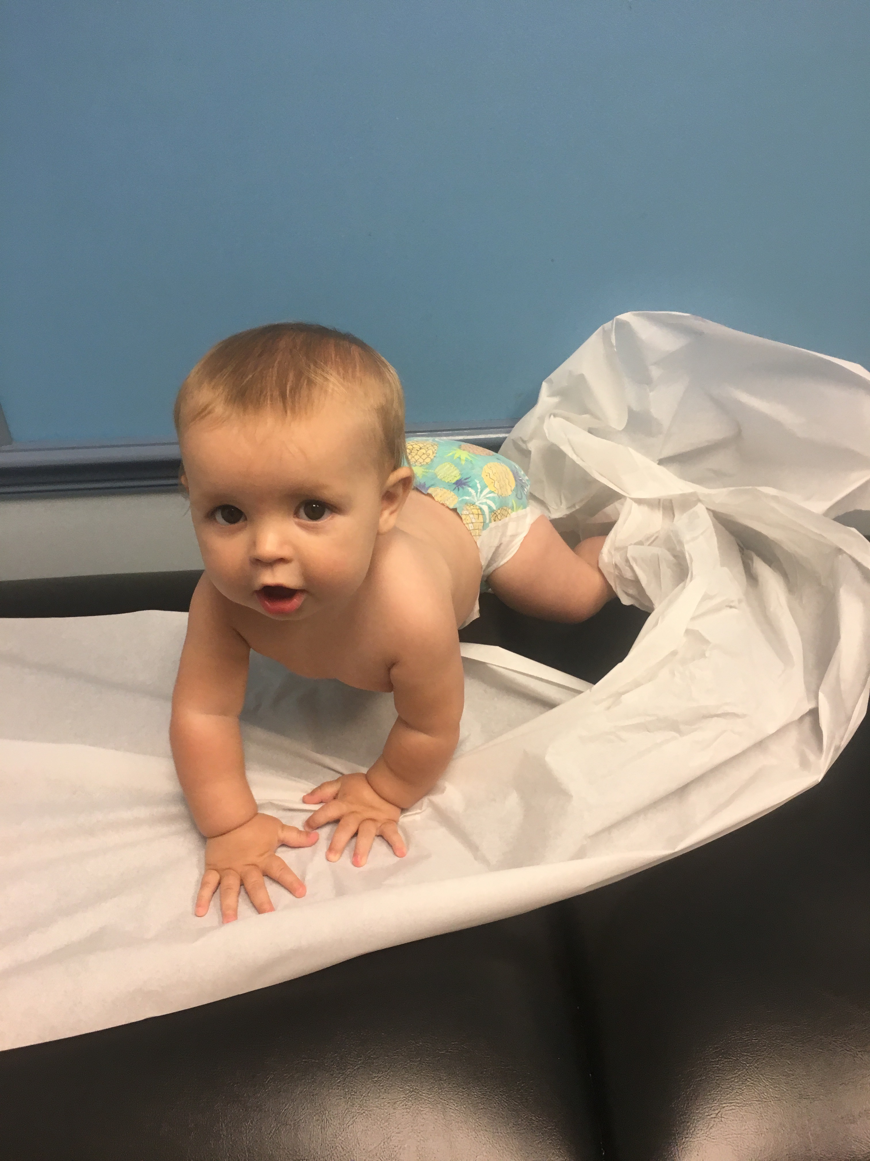 She did sit still in the waiting room for the most part. After the first 30 minutes she wanted to crawl around but no way I was letting her touch that carpet. 🤢