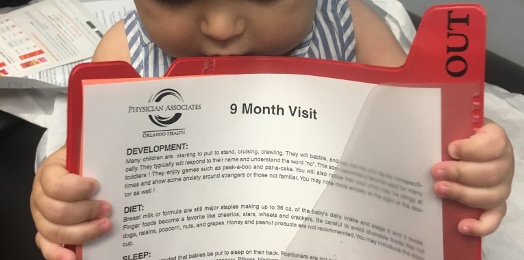 I would like to point out, however, that my “super accurate stand on the scale with and without her” method worked pretty dang well! I got 18.2 and the doctor’s scale weighed her in at 18.1lb today! Her weight puts her in the 45th percentile and her length of 26.5 inches puts her in the 9th for height. 😳 I feel like her leg had to have been bent when the nurse measured her…lol