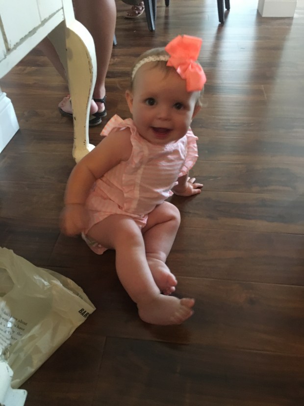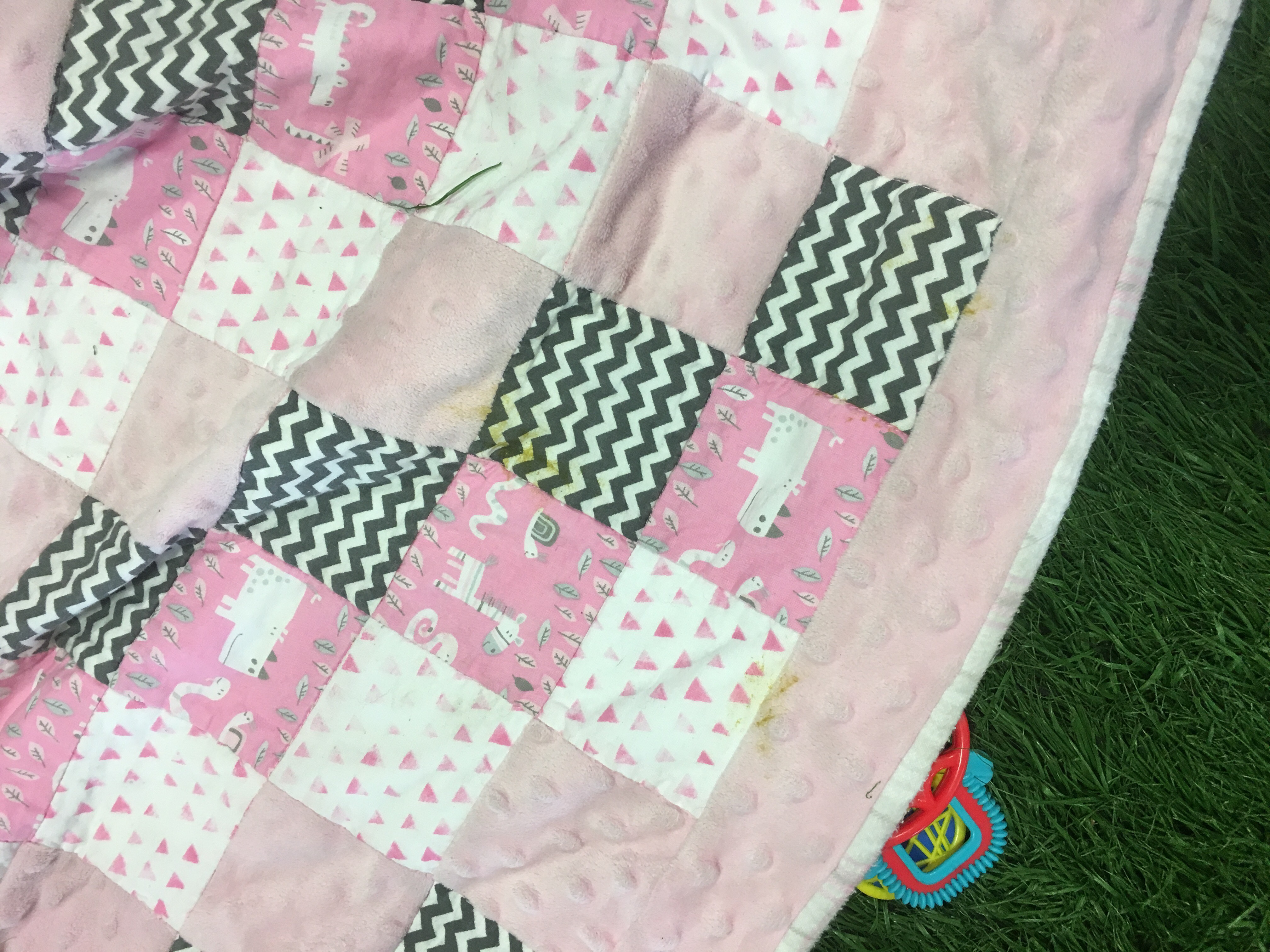 Since Kens is Captain Wiggle Worm lately, I think her diaper mayyyy have been a little off to the side on this one. Hahaha! I was at the gym and one of the girls came over with “the news”. She damaged the blanket but somehow avoided her outfit. Nothing a little washing machine can’t fix! (The blanket. Not the baby.)
