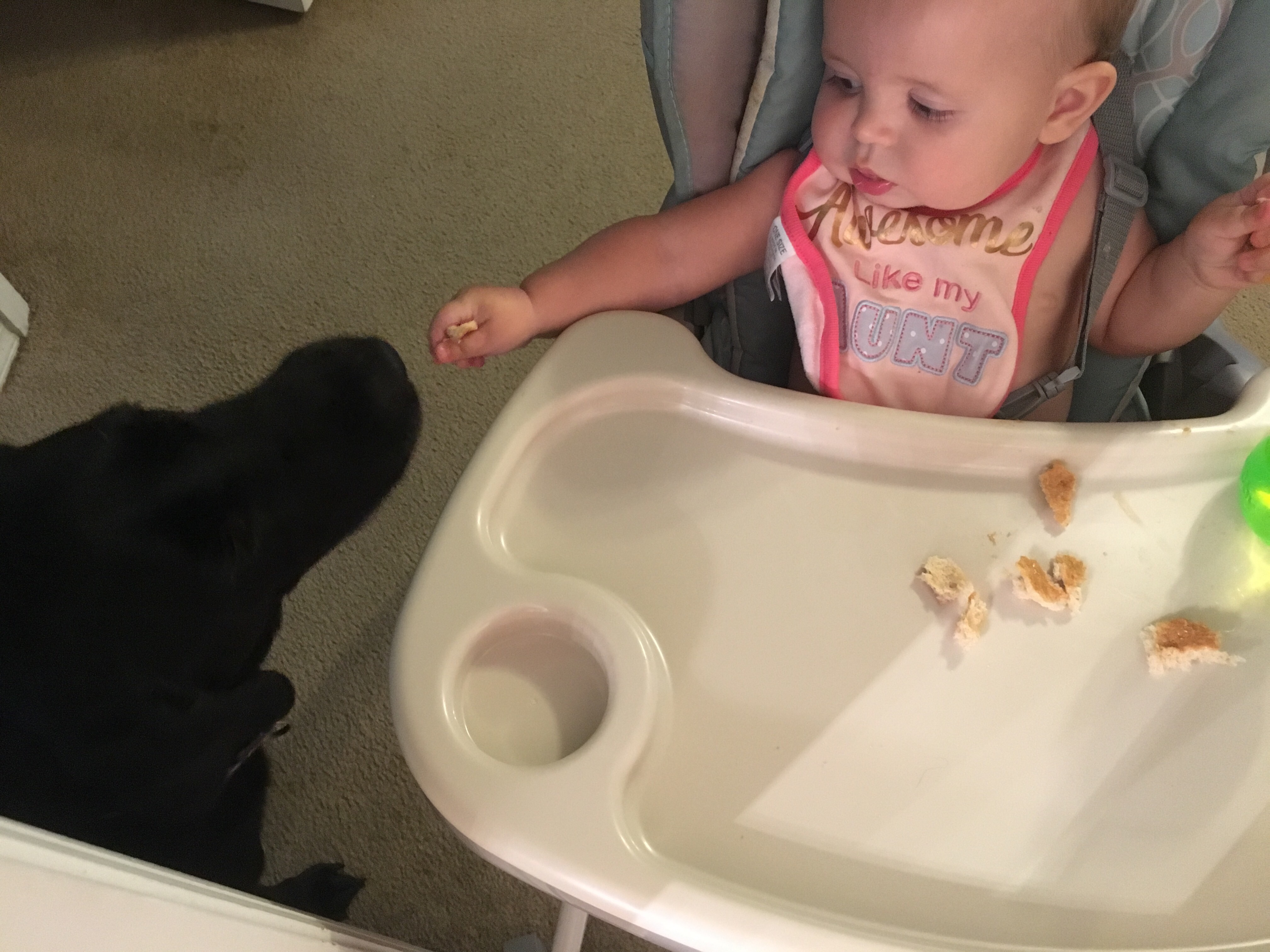 I had to multitask and give Kensie lunch as I got ready for the day. I brought her chair into the room and looked over to find this madness.