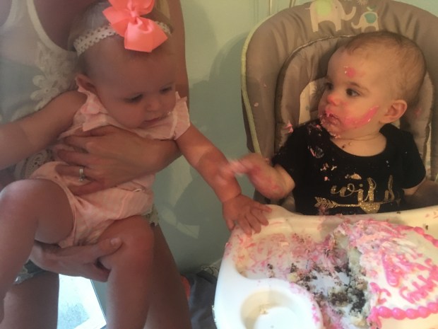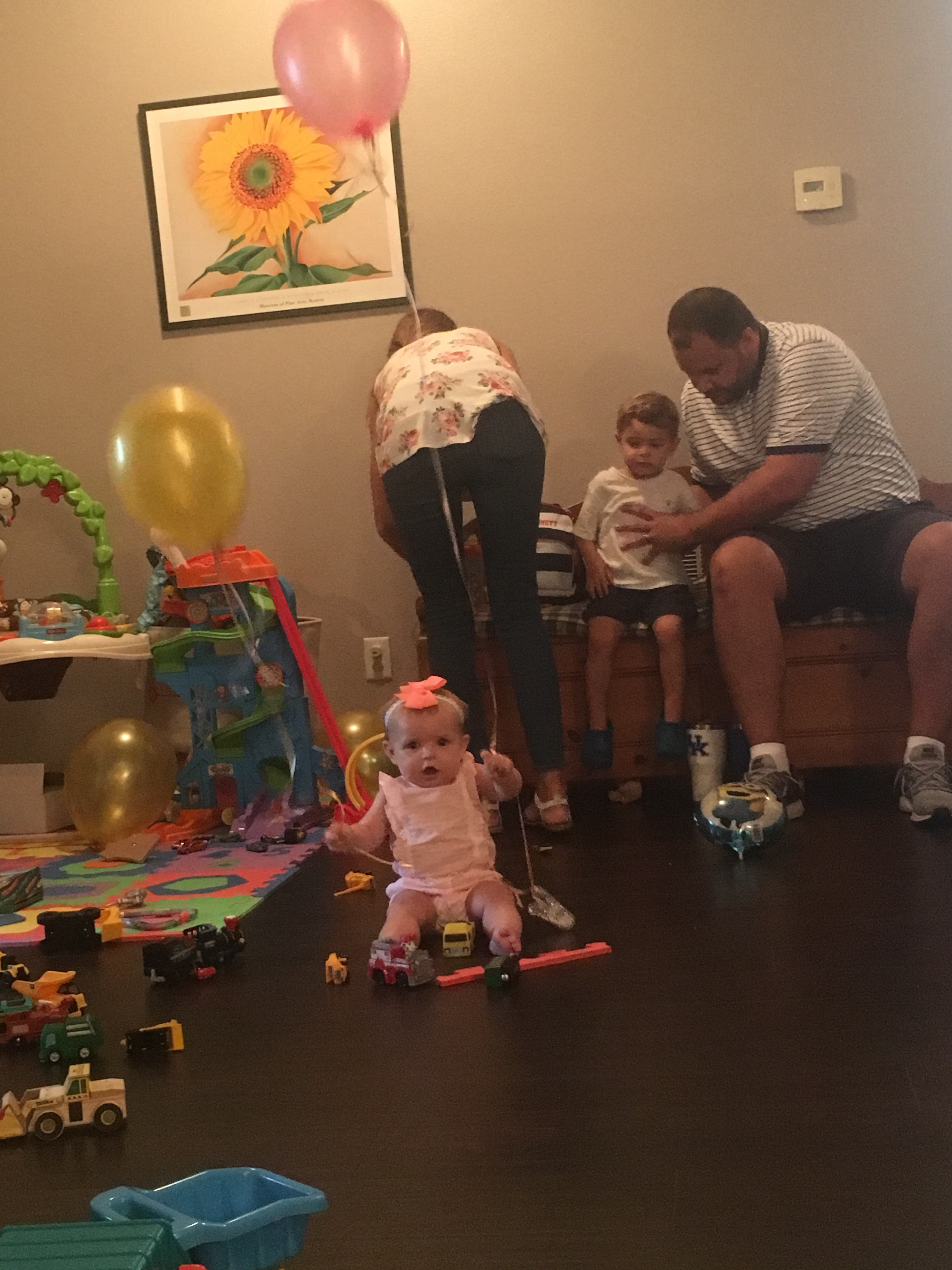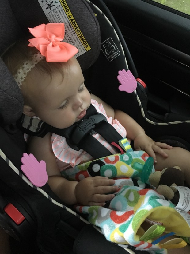 K finally got a nap in on the car ride from the baby shower to Harper’s first birthday party.
