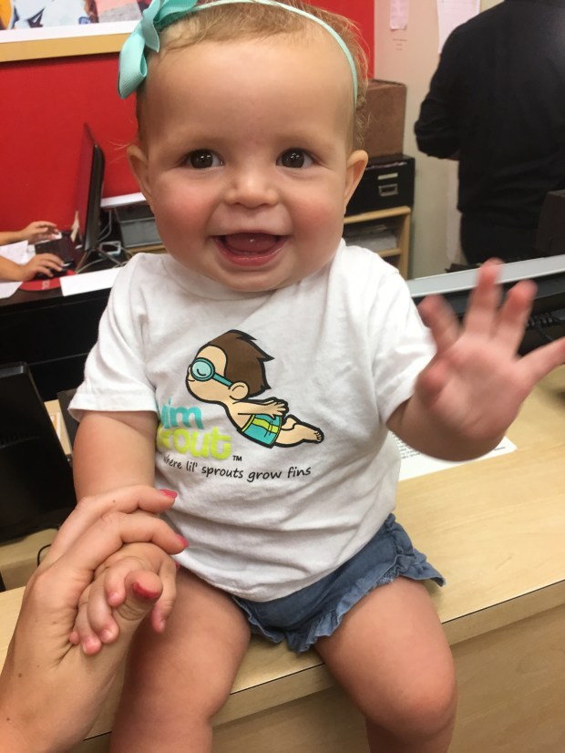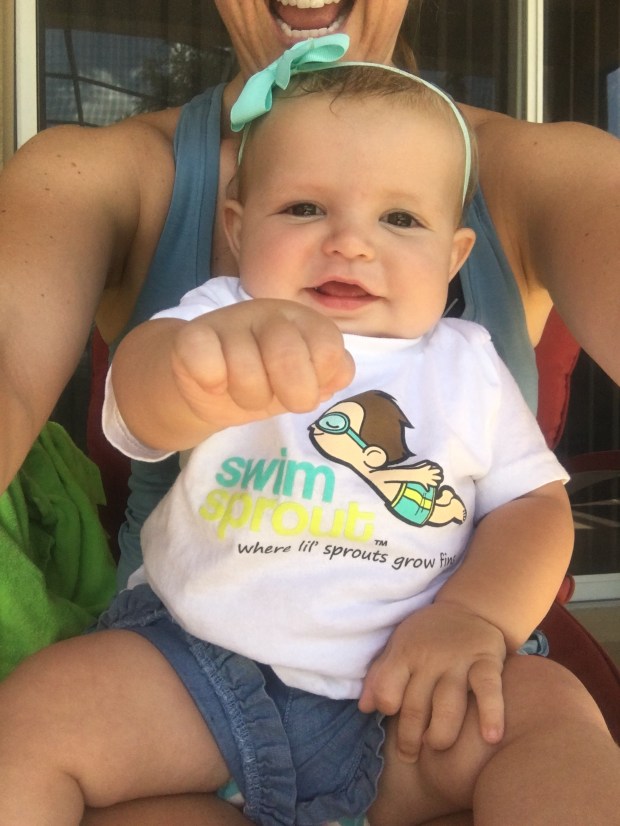 Day 1 of swim test week went perfectly! K wore a normal diaper so it would be heavier than a swim diaper when it got wet. She did her rollover every time and floated for over a minute!