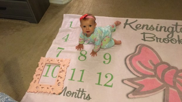 Kensie LOVES to crawl (as you can see), throw things, yell/talk nonstop, grab other babies, take baths, splash in any and all water and get any attention in general. She’s a momma’s girl when she’s tired or hungry but other than that she’s full on party mode.