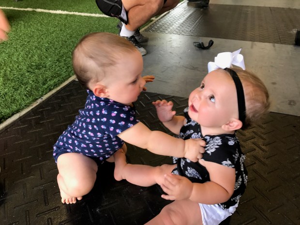 Kensie had tons of friends at the gym today. I actually think from the time I put her down to play I didn’t have to pick her up again until it was time to go! I am so thankful for the awesome people that love K and play with her so I can coach and workout! They’re extra awesome for sending me photos for the blog. π