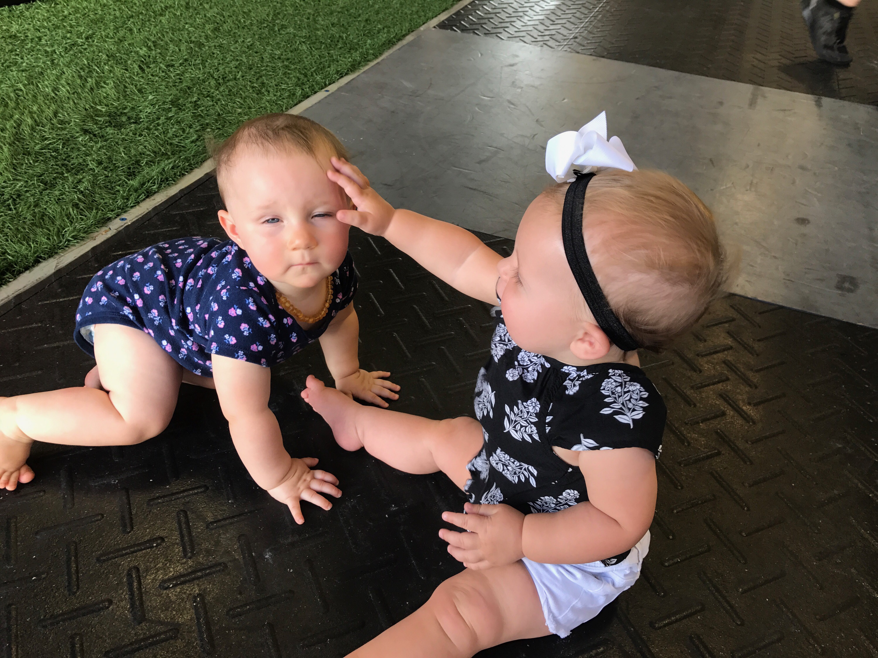 Kensie had tons of friends at the gym today. I actually think from the time I put her down to play I didn’t have to pick her up again until it was time to go! I am so thankful for the awesome people that love K and play with her so I can coach and workout! They’re extra awesome for sending me photos for the blog. π