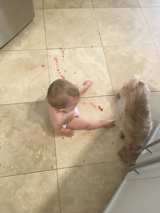 This month KB learned how to drink from a straw and momma learned she has that ability the hard way. She can also feed herself and once she realized that, she stopped letting anyone else feed her. She doesn’t want you to put food in her mouth, you have to hand it to her first. π