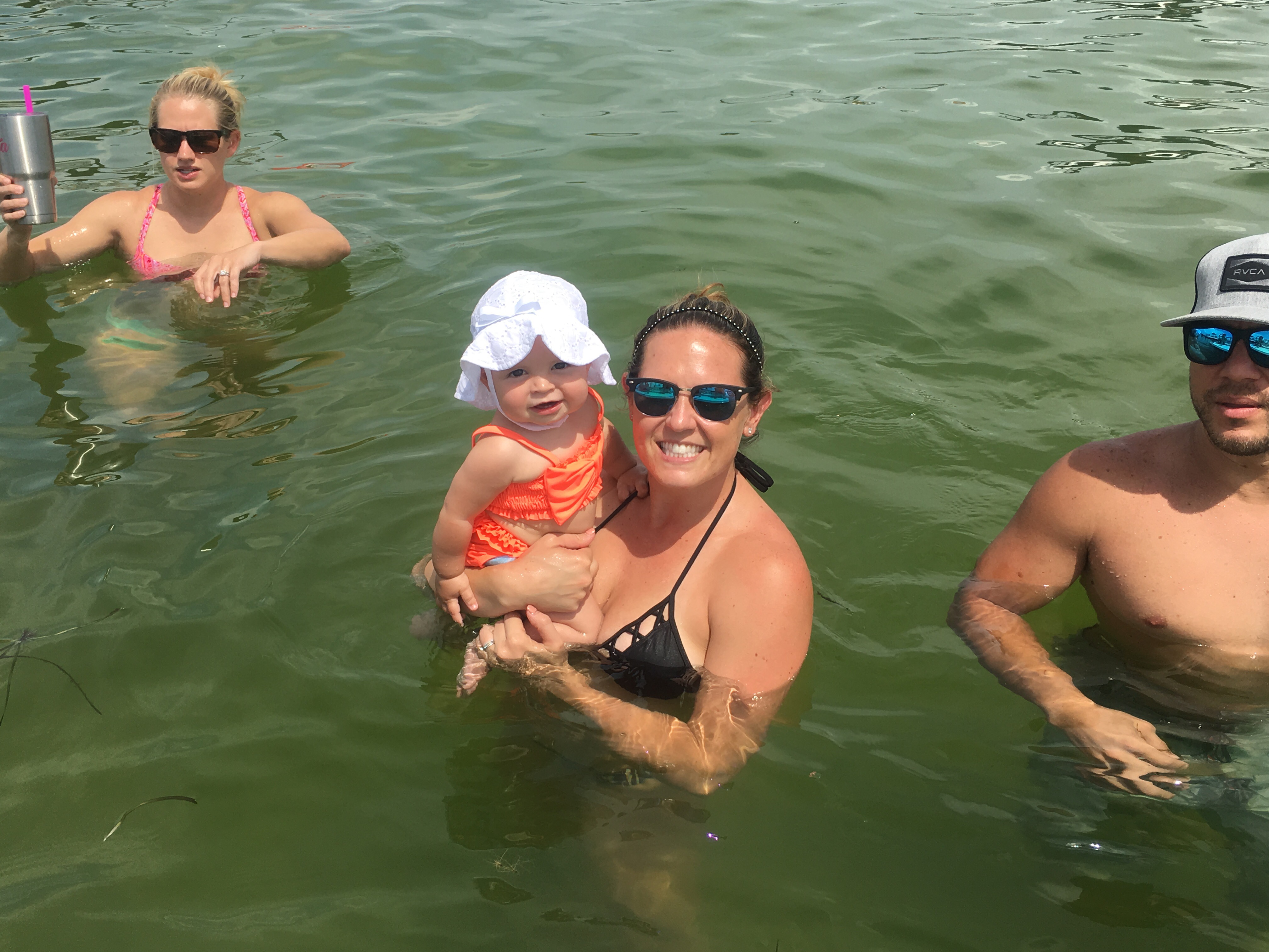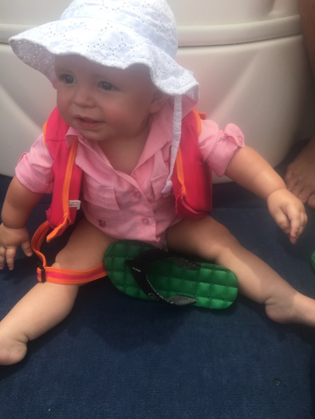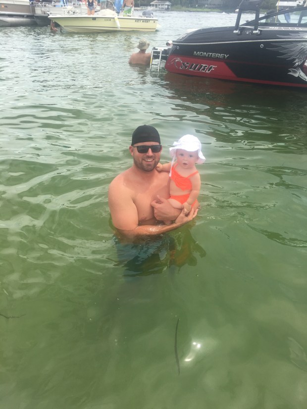 She was playing in the water with Chris and when he handed her to me she made her “I’m annoyed” fuss noise and reached back for him. Um, EXCUSE ME?! π