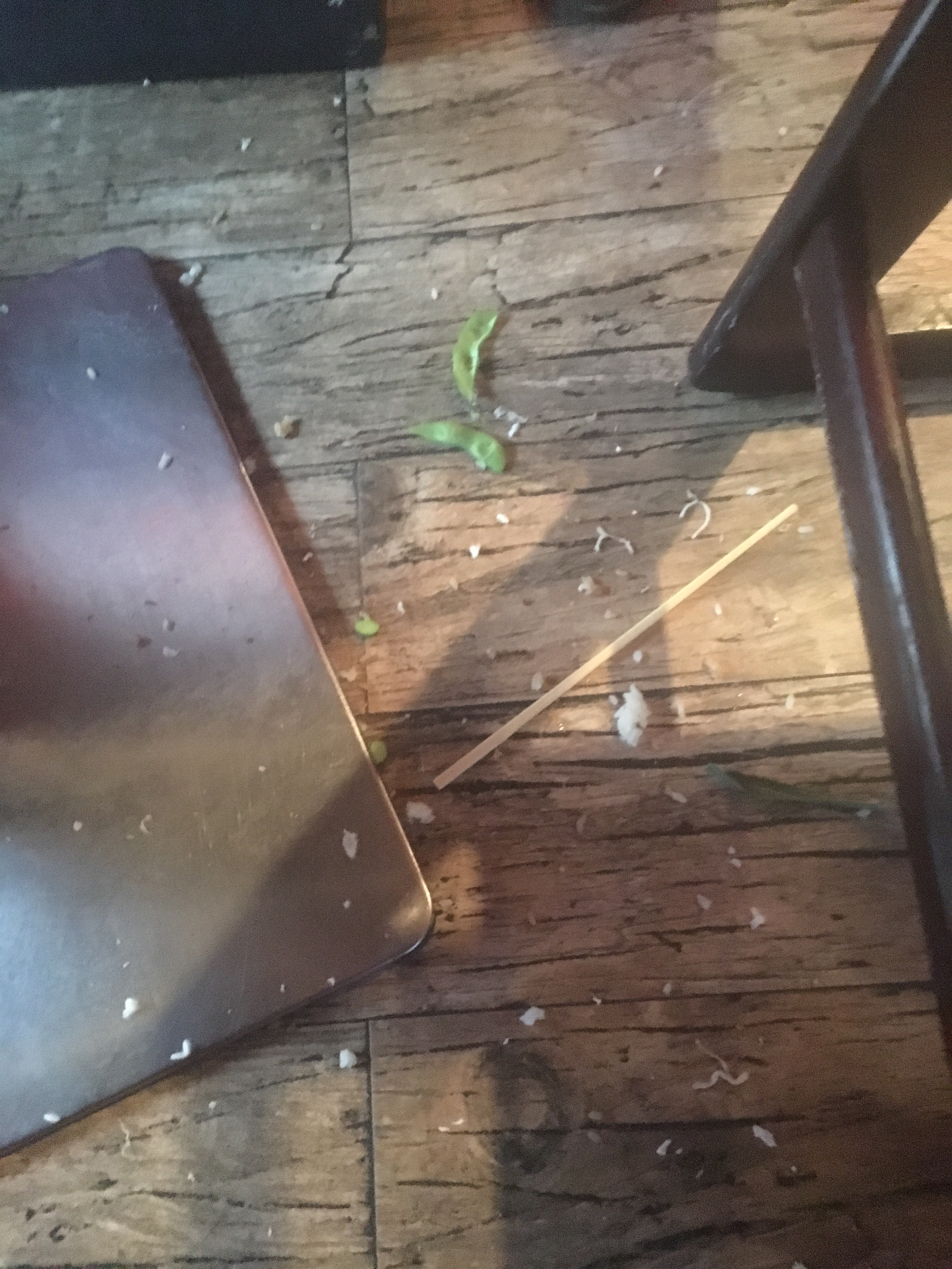 While we are on the topic of food, we had our first public embarrassment at dinner. Kens decided to grab the placemat and rip it off the table. There also happened to be a plate on said placemat when she did that. Whoops.
