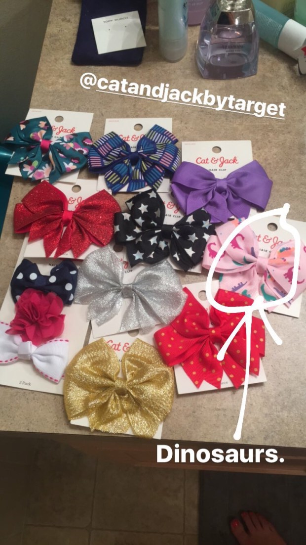 Also, I almost didn’t get the dinosaur bow but I feel like every day is National “insert something stupid” day so there has to be a Dino day in there somewhere. And when it comes, K will be ready.