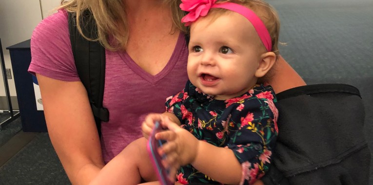 Our failed attempt at saving the middle seat we resorted to playing on the floor for a while…until she wanted to crawl under everyone’s seats.She was loving the view!