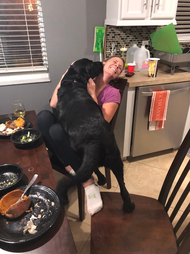 We weren’t the only ones excited to see her… Jack was all out of sorts this evening. He completely lost his mind and climbed up on the chair over to her but we let it go for a minute because we needed a photo. 🤷🏼♀️