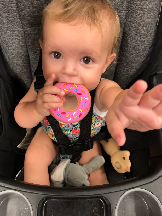For the 3rd morning in a row, after wrestling Kensie to change her diaper (sit the eff STILL!!!!) she picked up her necklace, put it to her neck and then handed it to me. Then, she picked up a bow (that didn’t match) and put it on top of her head. 😂😭 So, next week she’ll just be getting ready all on her own?! That’s surely how it feels!