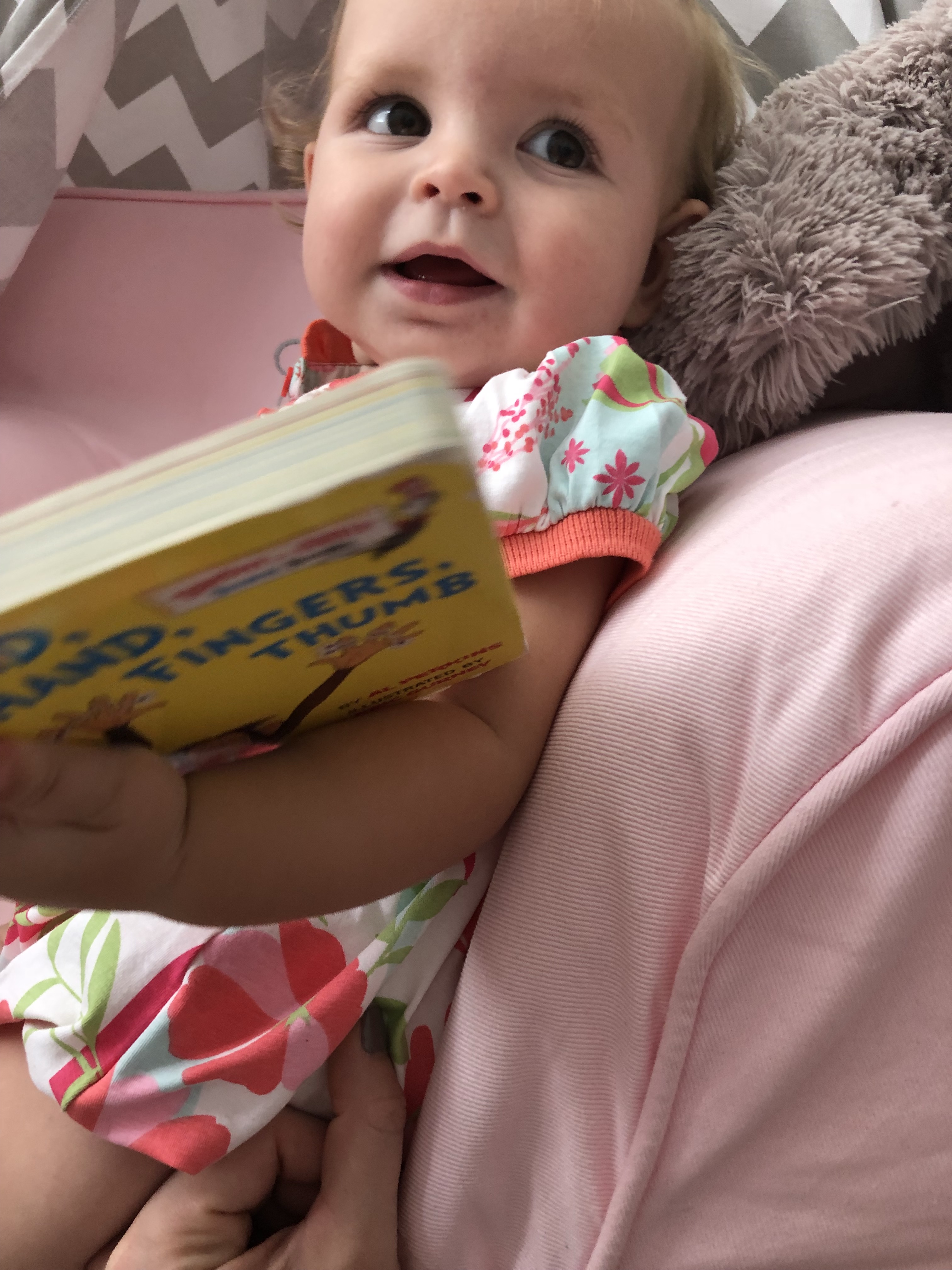 Every time I set K down, I put her on her feet. Usually she squats down and crawls. Today I did it, and she took 10 steps across the room. Pretty sure my jaw dropped. I stood her back up to see if she’d do it again…13 more. Wahhhh?!?