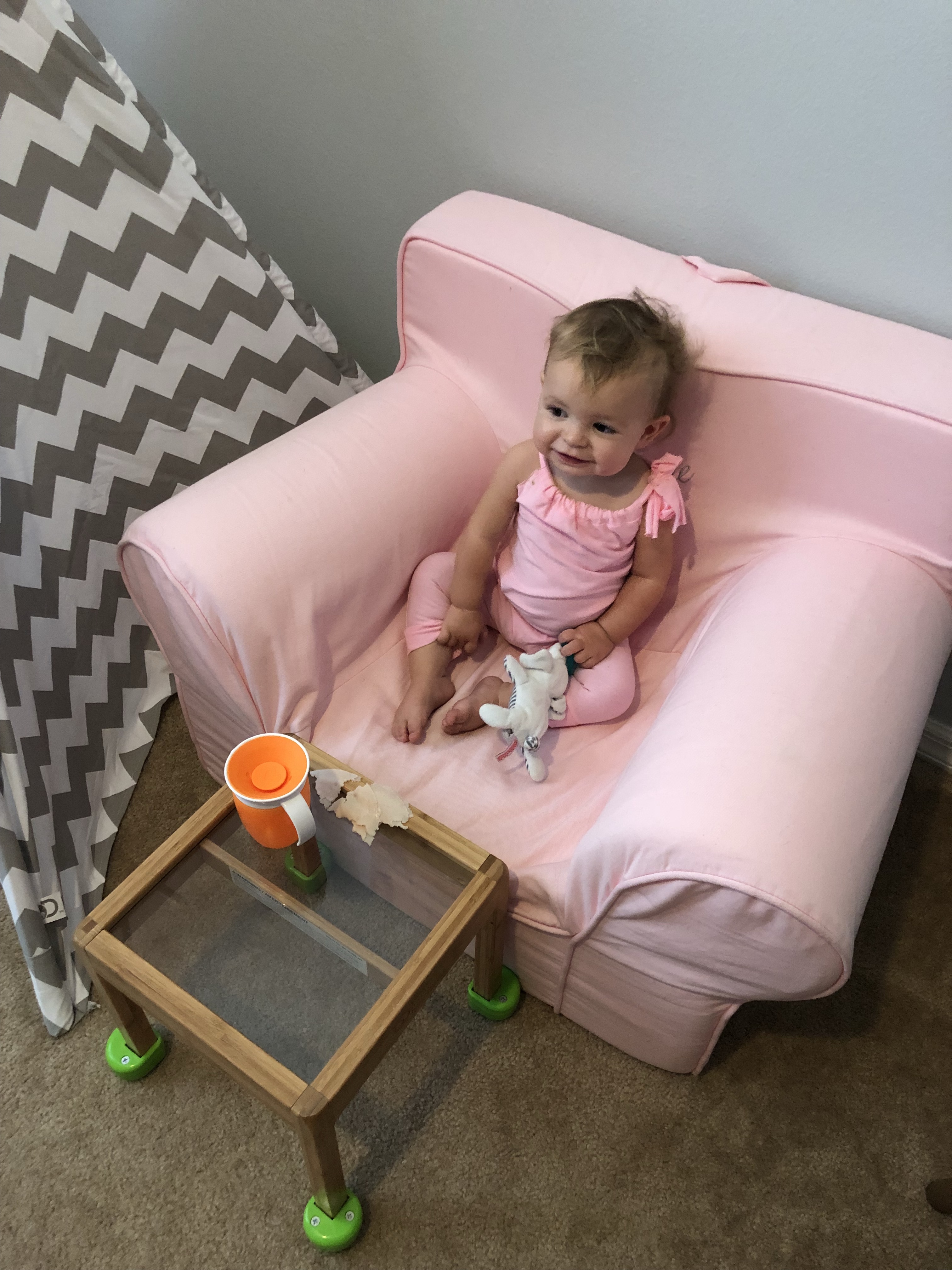It wasn’t all sunshine and rainbows this morning, though. I thought we were in the clear on breastfeeding…I thought wrong. I’ve discovered that’s why K has been so fussy in the mornings. Today she fought it HARD. She kept trying to get me to feed her and y’all, it was hard. Thankfully I can’t even physically nurse her anymore since my supply stopped or I might have given in. She was breaking my heart. K went as far as seeing the corner of the nursing cover in the hamper, pulling it out, and handing it to me….followed by screaming when I put it back down. I was extremely impressed with her communication skills, though.