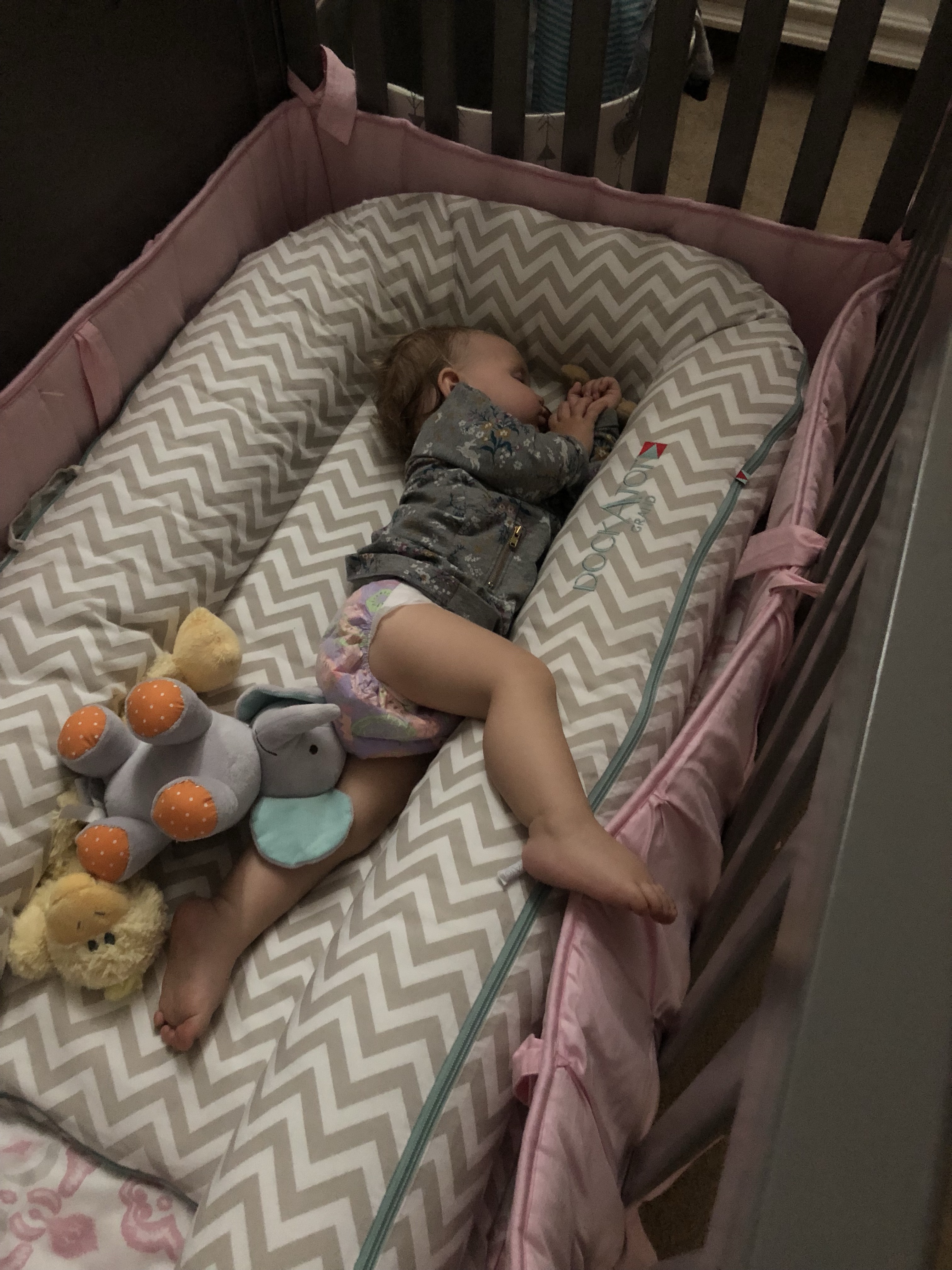 Tonight is at least starting off better than last night. She woke up about an hour ago and made a few “eh eh” fuss noises for a second and went right back to sleep. 🤞🏼