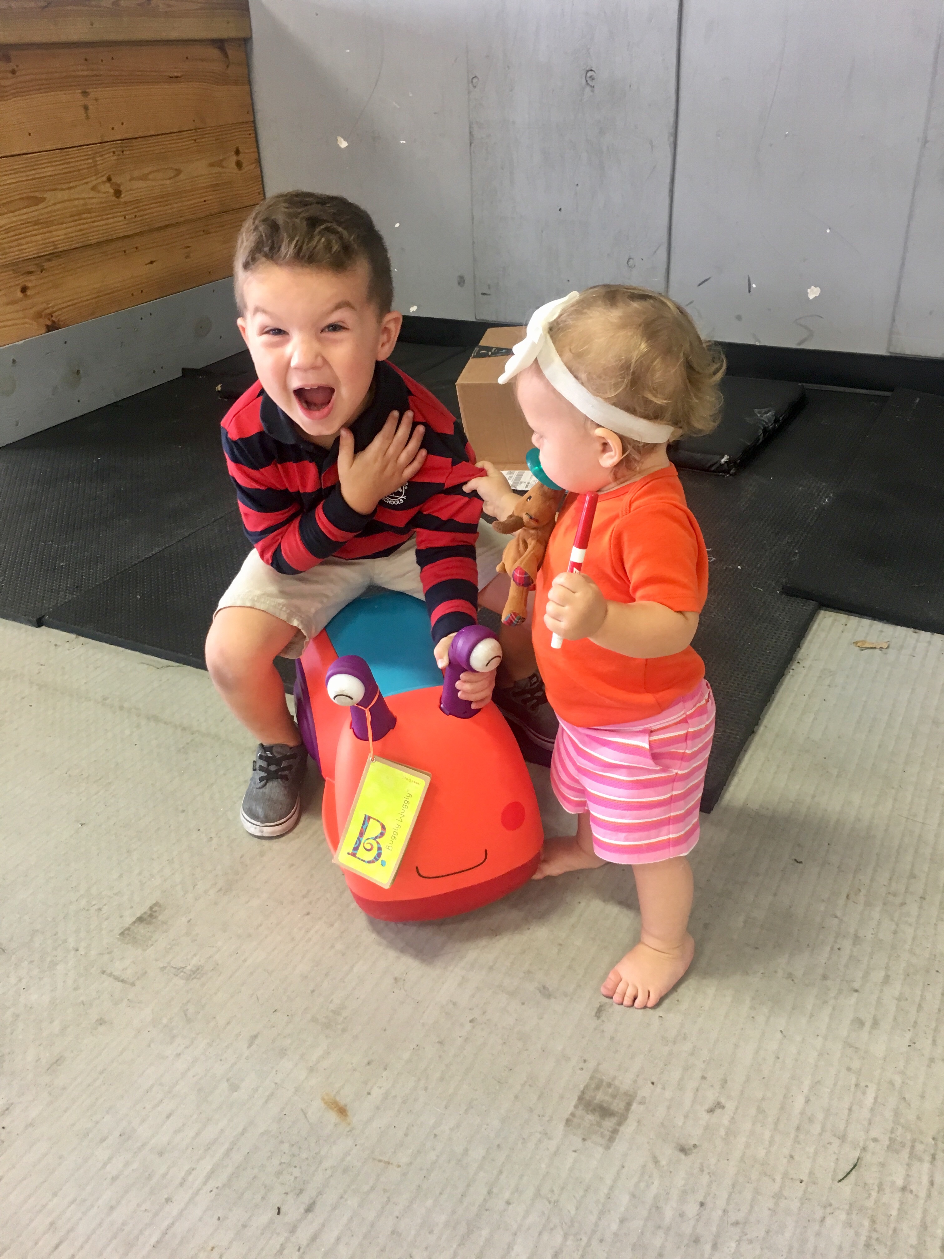 Before all the drama of the weekend kicked in, Harper and Riley came to play with us Friday morning! They had so much fun playing together and Riley even took Kensie for a ride in her car. Since she’s too small to drive it she just gets her boyfriend to drive her around…foreshadowing? 😯😜
