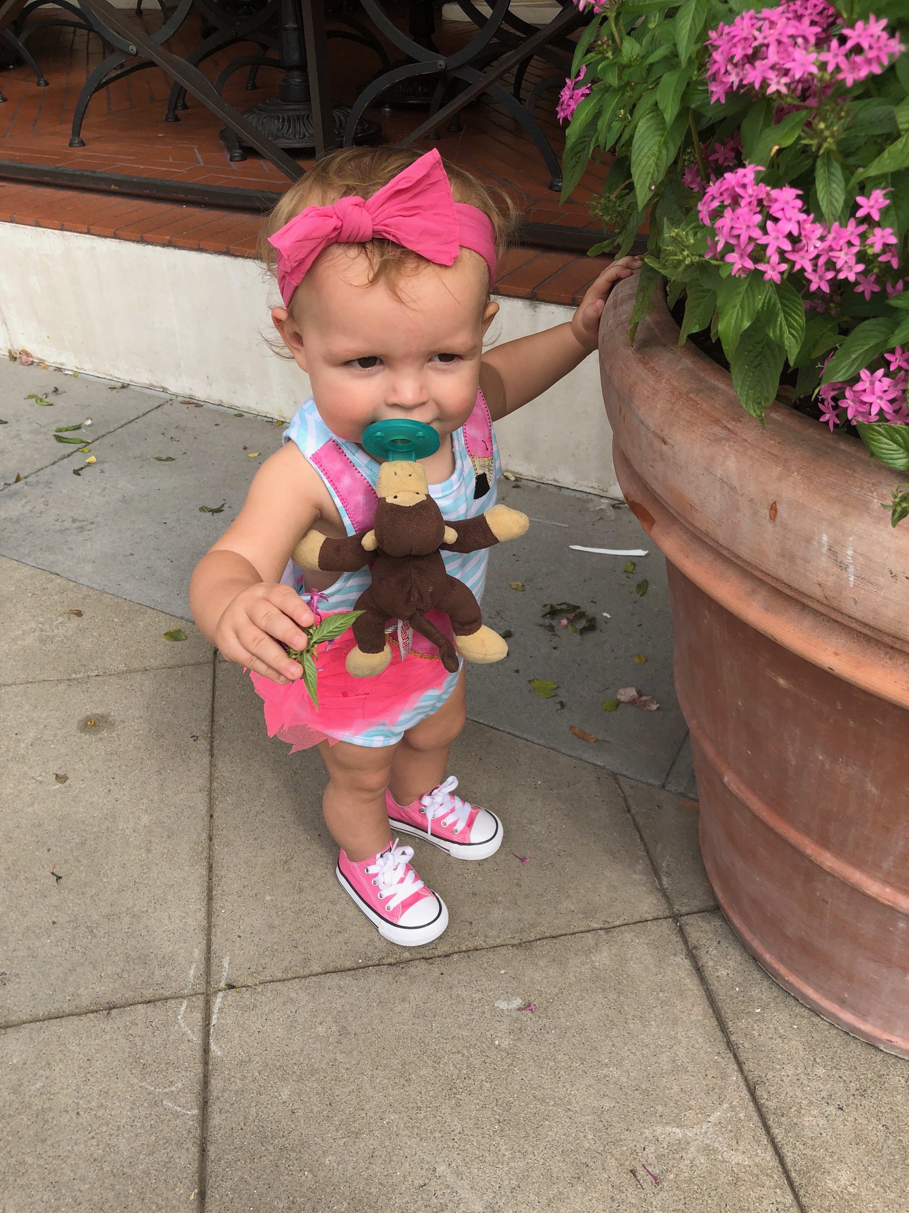 As you can see above, she isn’t shy. All the employees would comment on how cute she was and reach down and she just grabbed their hands. 🤦🏼♀️ We really have to work on that “stranger danger” concept.