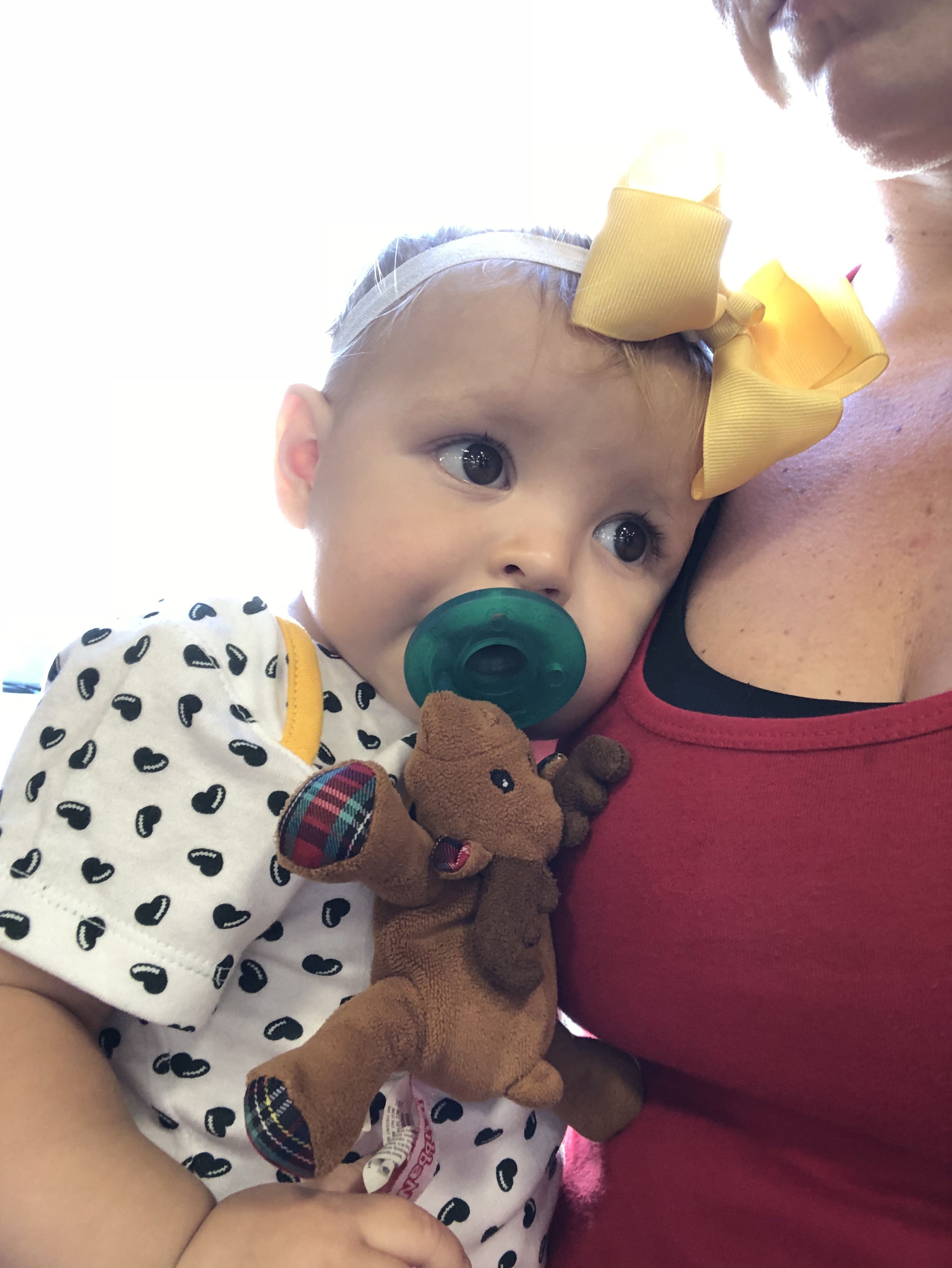 We got home just in time for lunch and in typical Kensie fashion, she wasn’t eating much. She refuses veggies if they aren’t in a pouch. I gave her chicken, turkey and some cheese…and a little cereal because the girl needs some iron. She ate some bites here and there but a few minutes in she was signing “all done”.
