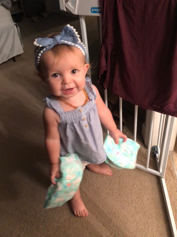 The not highlight of the day is I had to…discipline? Kens for the first time. I guess that’s what I’d call it. She’s started doing this high pitched scream when she wants something and it’s not cute. Okay, it’s kind of cute/funny right now but I refuse to encourage it because it’s the start of temper tantrums. I learned a lot about how well positive reinforcement works at her age from her swim lessons, so I took that and refused to give K what she wanted until she did what I told her to do. (Put her binky in and relax 🙄)