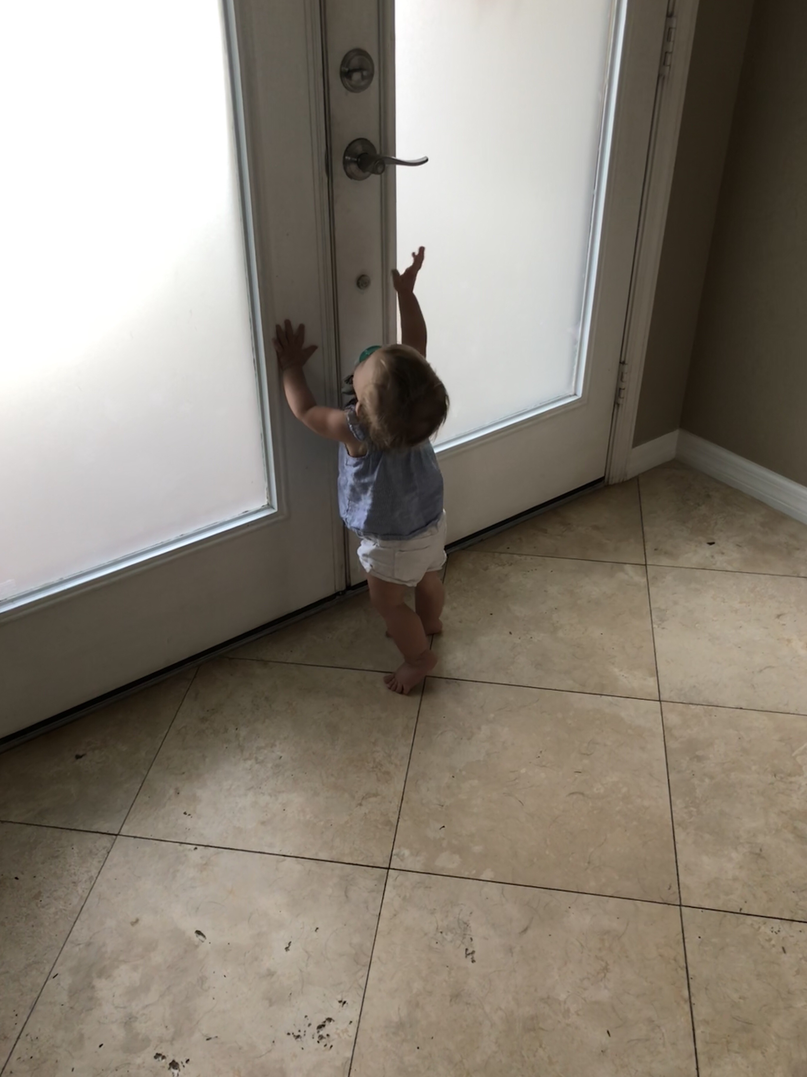 This afternoon as we got ready to leave, I was walking around the house turning off lights, locking the back door…all that responsible stuff. Kens was wandering around and I was telling her it’s time to go. Next thing I know, she was at the front door, reaching for the handle saying “go, go, go”. 😳