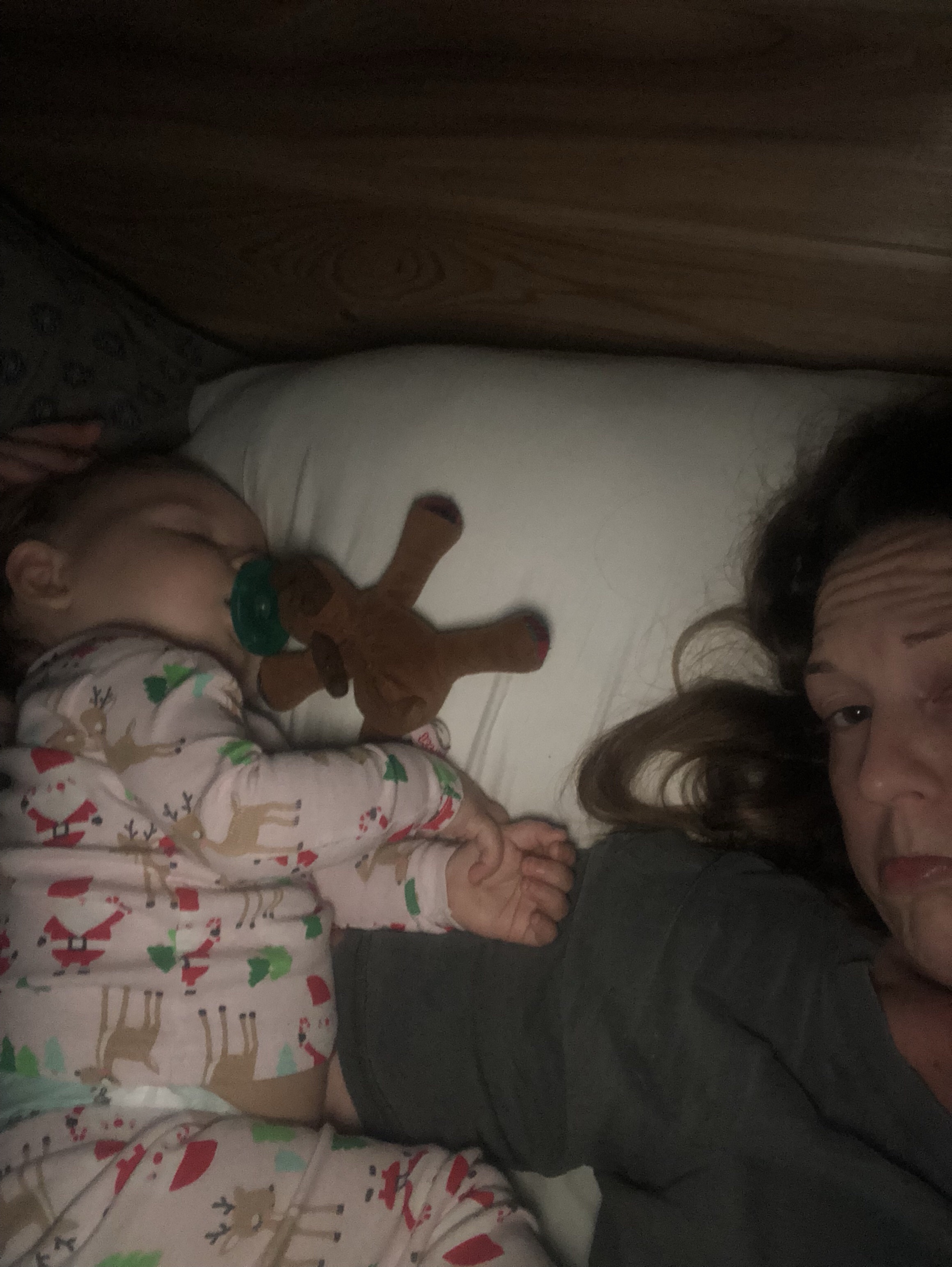 A few hours later it turned into her legs on my face. Then her entire body, sideways across me. Then her back on top of my face. š Long story long, I moved her back to her crib so I could attempt to get a few hours of sleep.