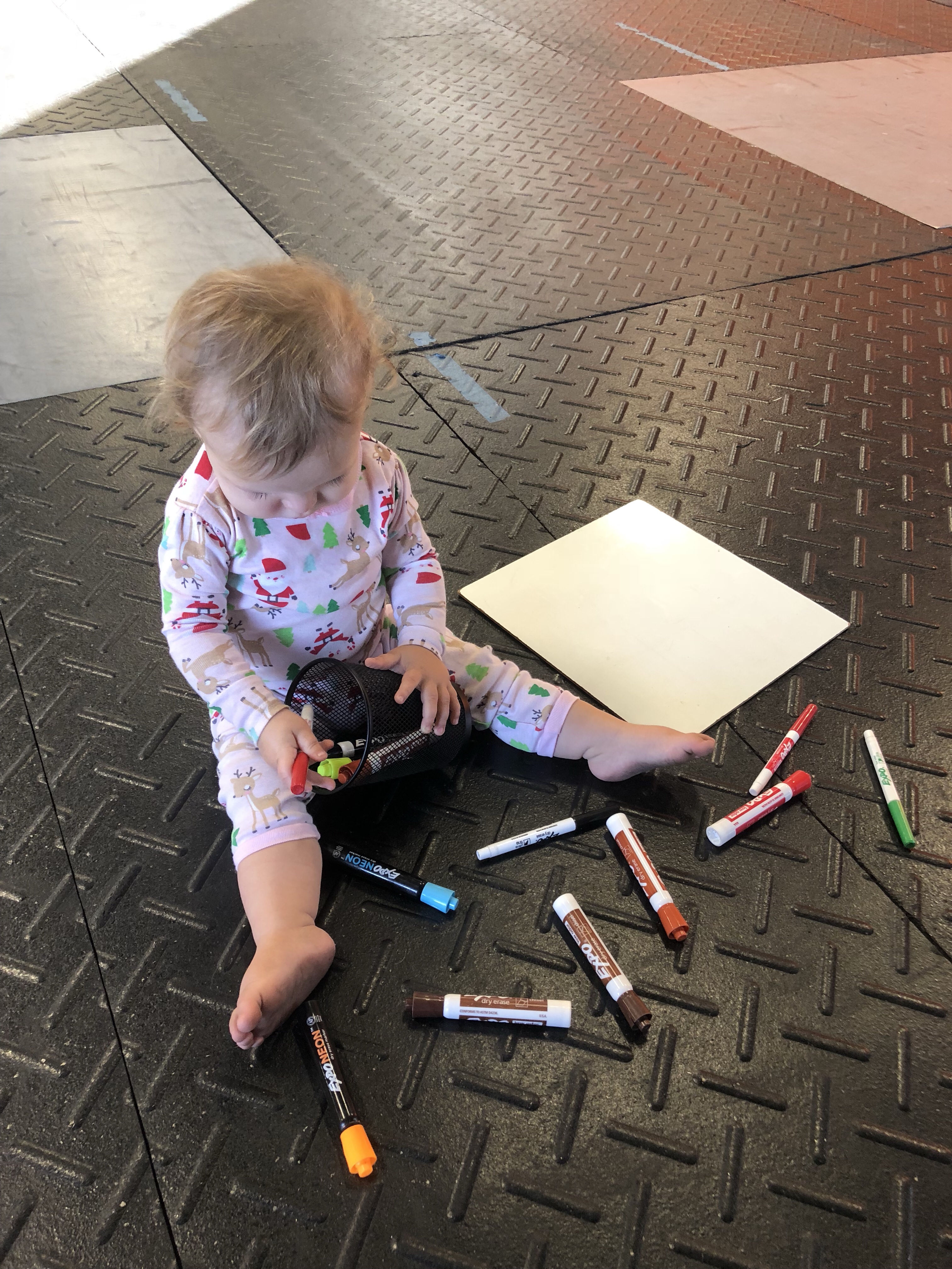 K was pretty sleepy all morning since she didnāt sleep great last night. I had to coach a morning class so KB got to rock her Christmas jammies at the gym. She kept wanting to be held and hugging my legs because she was sleepy, but she was in good spirits!