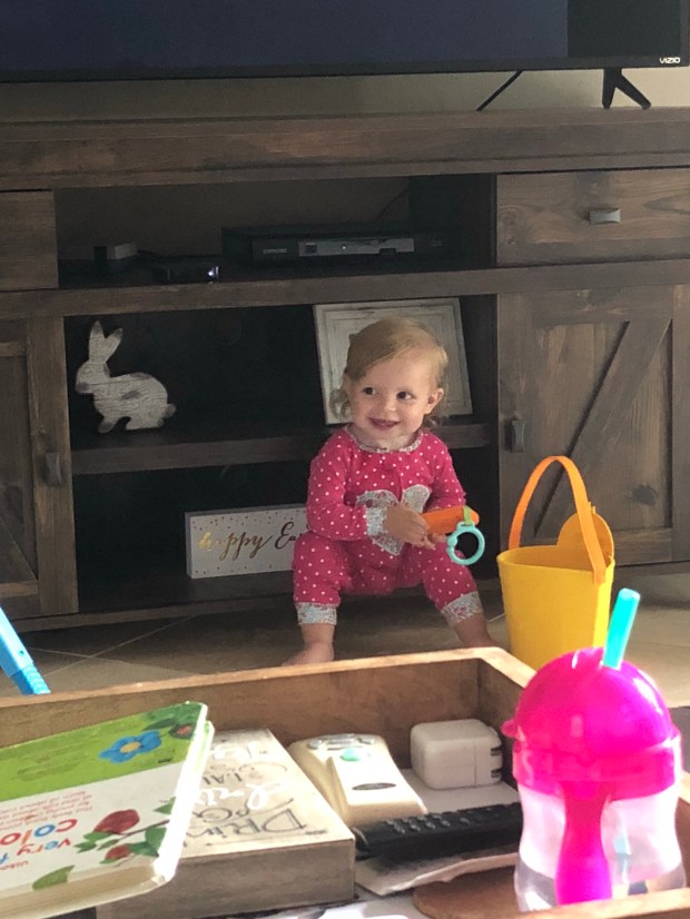 Speaking of Baby Einstein’s…K’s obsession has graduated to a whole new level. She will seek you out, hand you the remote, grab your hand and walk you to the TV to turn it on for her. 🤦🏼‍♀️ When you do, she gets a huge smile and starts a dance party.