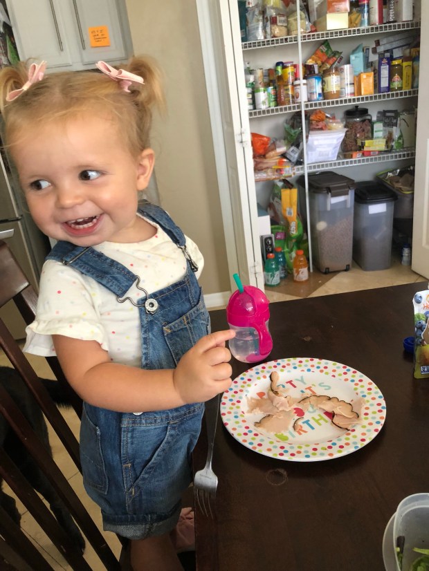 She’s also in the “MINE” phase. Everything is “mine” if she wants it. 🙄 We’re working through it, lol! While she wants to be little Miss Independent, Kensie’s still the sweetest snuggler for mama and won’t go to bed until daddy goes in for a hug and kiss. 😭