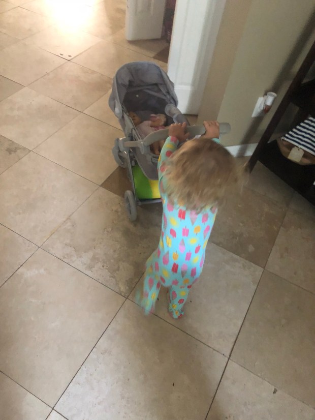 KB has a special talent of carrying as many things at once as she possibly can. She’s going to crush the one trip grocery game when she gets older.