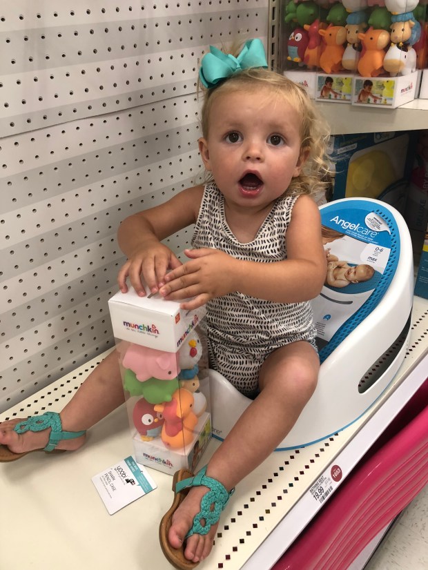 She’s already playing the Mommy v. Daddy card which I was not expecting just yet!! 😳 If I won’t let her do something/have something she immediately asks for Daddy and vice versa (or even Aunt Shell, because she always says yes, LOL). Parenting just got a whole lot more fun!