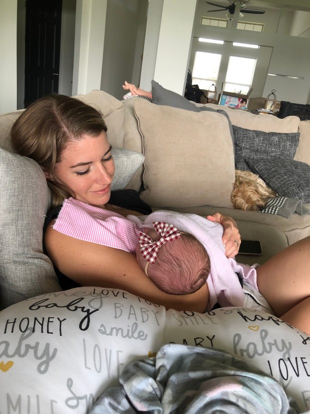 Leighton is adjusting to life outside the womb like a boss. She eats, sleeps, snuggles, burps and poops like a seasoned champion and while I would prefer time slow down, I’m loving every second of it!