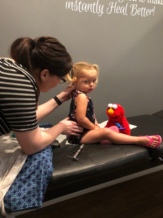 Today we went to our Chiro appointment and Kensie insisted on bringing Elmo. She then adjusted him and informed us all that she’d be adjusting Leighton, too. π€¦πΌββοΈ She said she’s “Dr. Anna” (from her Daniel Tiger book). OKAY, Kens. Okay.