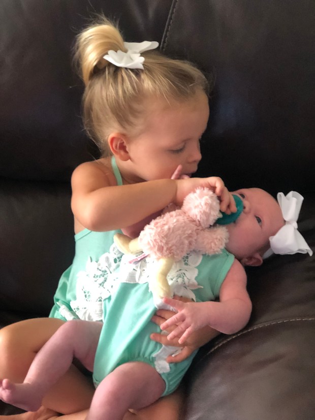 I think Kensie has moved completely past her minor jealousy stage, so other than being a typical toddler (π), she’s been the absolute BEST big sister. She’s still protective (or controlling…) over her and tells people not to touch her when they come over or pick her up. Lol!