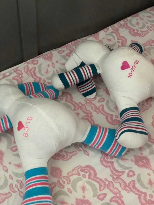 There’s a local lady that makes these sweet bunnies out of hospital blankets as a keepsake! She made Kensie’s a few years ago, too. Both are made from the very first blanket they were wrapped in once they were born! β€οΈ (I washed them first…just to clarify. π)