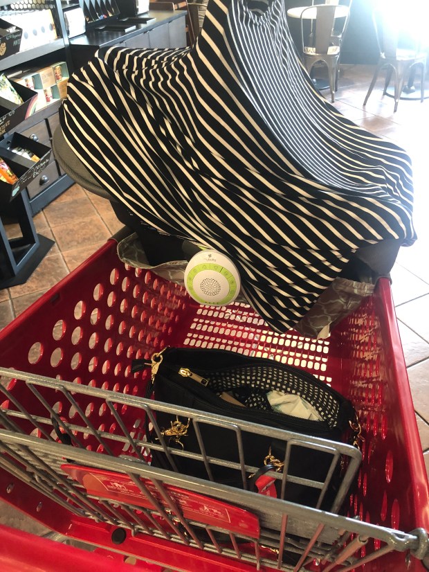 Yesterday to celebrate Leighton’s 5 week birthday we took a shopping trip to L’s favorite place, Target!!! (I love having kids to blame my bad habits on) She was so overwhelmed with excitement that she slept the entire time. π However, we did use the best product EVER and I have to share it with you guys. I posted this before with K but in case you missed it – this is a Binxy Baby!