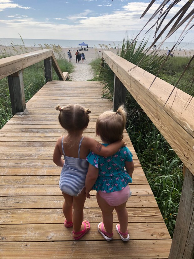 These photos look very sweet and peaceful but the chaos of 2 toddlers and an infant taking a trip to the beach is REAL. Ashley and I piled all 3 girls into one car and played a solid game of carseat tetris that resulted in having to put Leighton’s seat in by climbing through the trunk. LOL (don’t call DCF. I promise it was safer than it sounds and no, she didn’t ride in the trunk). π