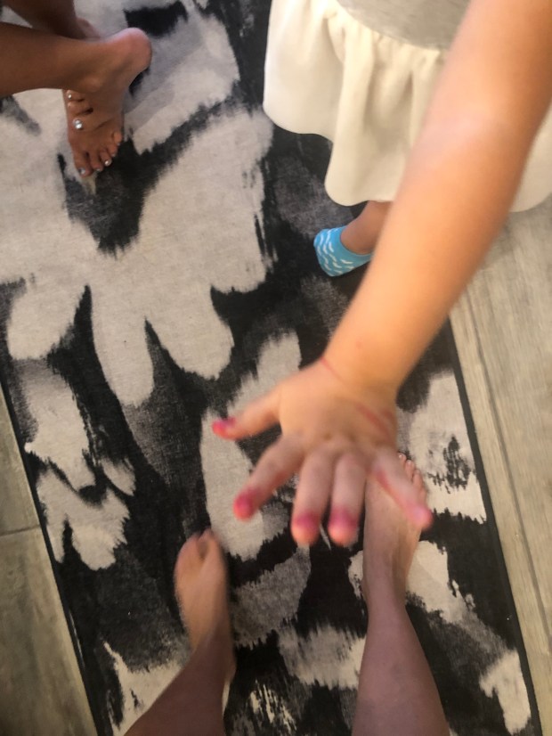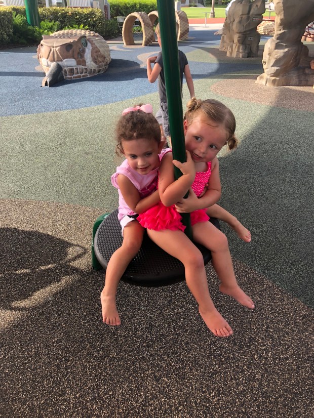 As we were trying to get the “big” girls changed and ready to leave, a car pulled up next to us with a family and older teenagers. The sweet mom looks at us and goes βit gets easierβ – which just explains how disasterous we must have seemed. Hahahah!