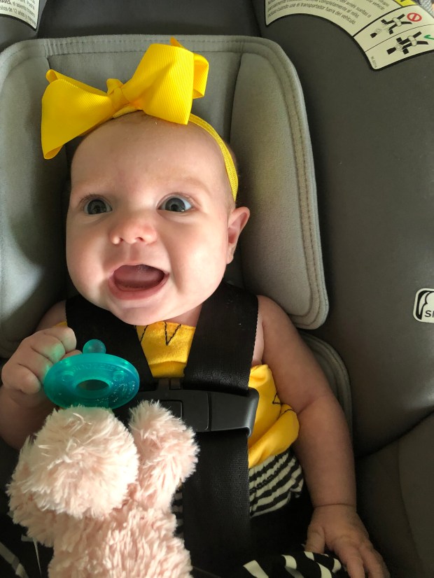 While she may be growing quickly, she’s still the good ole pooper we know and love. I had to remind the whole 5p that on Wednesday’s, we wear orange…and L took that memo a little too seriously.